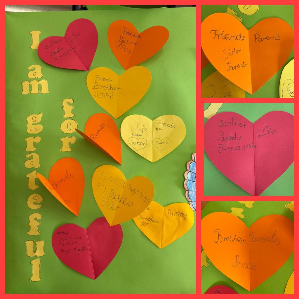 27 listopada w Stanach Zjednoczonych obchodzone jest Święto Dziękczynienia, dlatego podczas zajęć języka angielskiego w klasach 1–3 odbyła się specjalna lekcja kulturowa. Uczniowie obejrzeli krótki film edukacyjny przedstawiający historię i tradycje związane z Thanksgiving. Następnie wzięli udział w quizie, w którym odpowiadali na pytania dotyczące treści filmu, m.in.: Kim byli Purytanie?, Jak nazywają się rdzenni mieszkańcy Ameryki?, Jak nazywał się statek, na którym Purytanie przypłynęli do Ameryki?, Kiedy Amerykanie obchodzą Święto Dziękczynienia? Jaka potrawa jest najbardziej znana na świątecznym stole? Po quizie uczniowie tworzyli plansze dziękczynienia – na papierowych serduszkach zapisywali po angielsku, za co są wdzięczni. Na zakończenie zajęć dzieci kolorowały tematyczne ilustracje.