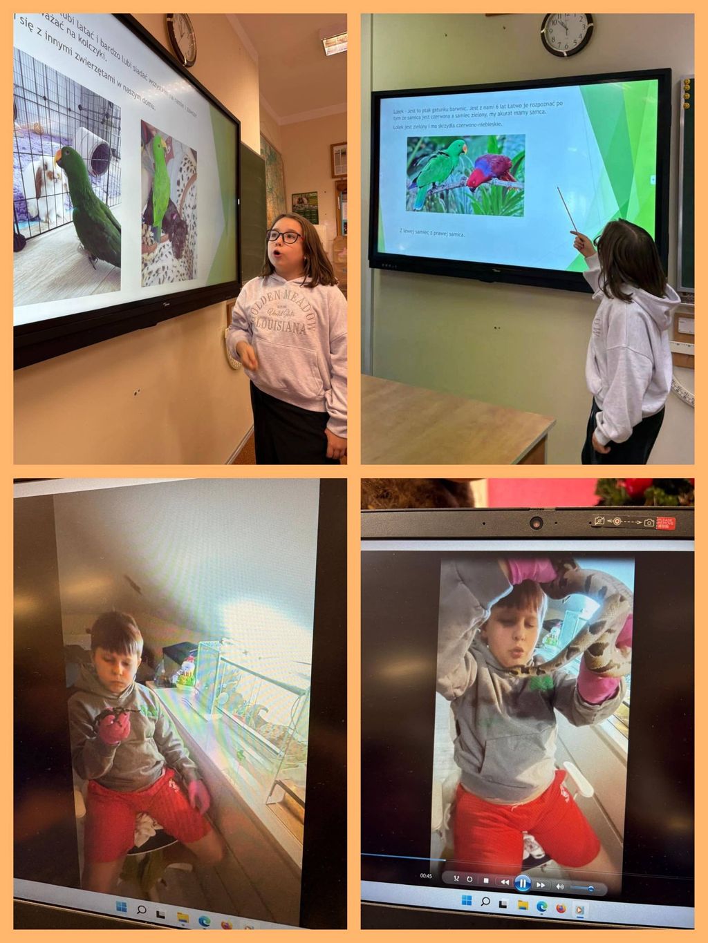Uczniowie klas czwartych świetnie spisali się na dzisiejszej lekcji przyrody! Jula, Maja i Kamil samodzielnie przygotowali prezentacje o swoich domowych pupilach. Z ogromnym zaangażowaniem opowiadali o tym, jak dbają o swoich małych przyjaciół, a cała klasa z zainteresowaniem słuchała i zadawała pytania. Brawo dla naszych młodych przyrodników!