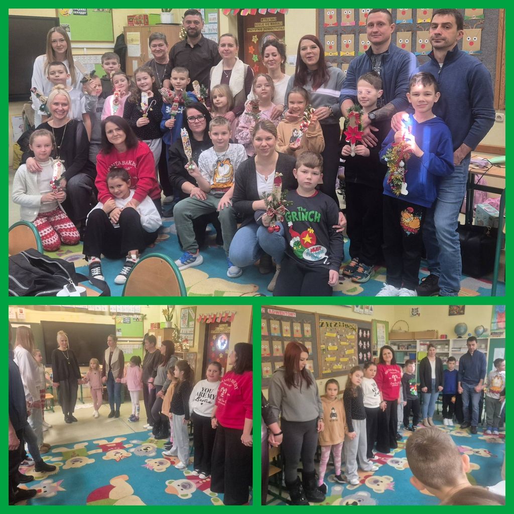 17 grudnia uczniowie klasy 2b, wspólnie z rodzicami, babciami i starszym rodzeństwem, uczestniczyli w świątecznej lekcji, podczas której wykonywali ozdoby świąteczne, a także zagrali w świąteczne "5 sekund", w którym wszyscy spisali się na medal. Dzieci mogły również zaprezentować swoje umiejętności w znajomości świątecznych części mowy. Ich bliscy w tym zadaniu również dali radę! Na koniec były świąteczne życzenia oraz Świąteczna Iskierka Przyjaźni. To był piękny, magiczny czas... Serdecznie dziękuję Rodzicom za przybycie i ogromne zaangażowanie. WESOŁYCH ŚWIĄT!