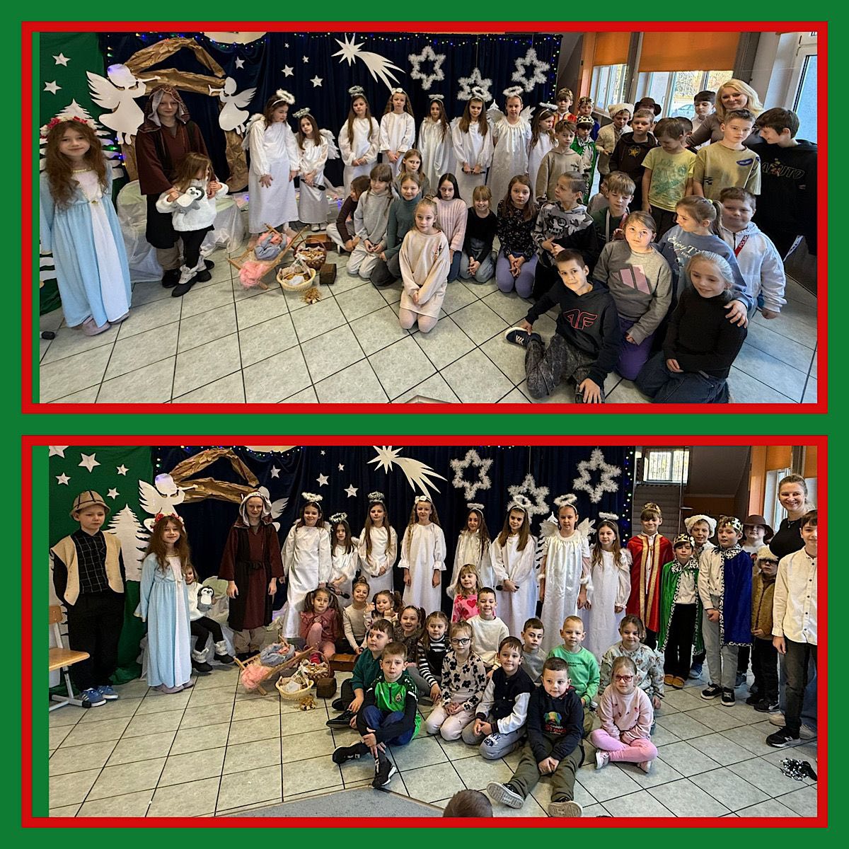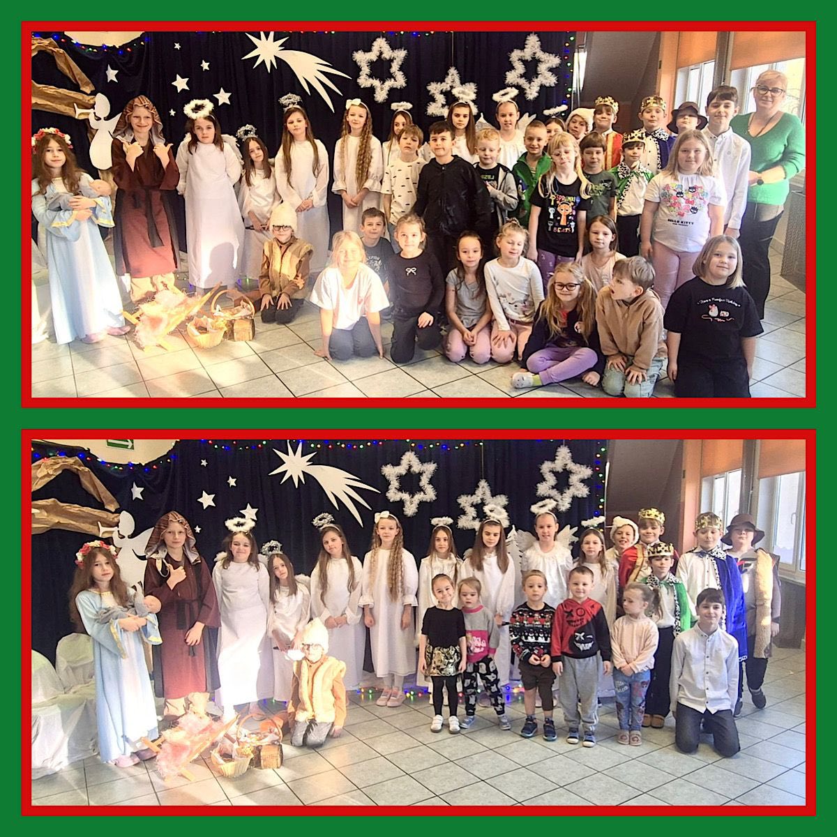 Za nami wyjątkowe, pełne wzruszeń jasełka w wykonaniu klasy 3 C. Były piękne i poruszające sceny, nastrojowe kolędy, pastorałki oraz świąteczne piosenki. Nie zabrakło także występów w języku angielskim. Wspólnie wsłuchiwaliśmy się w kolędy „Gdy się Chrystus rodzi”, „Wśród nocnej ciszy”. Szczególnym, radosnym akcentem była piosenka „Rudolph the Red-Nosed Reindeer”. To był naprawdę magiczny, świąteczny moment, który na długo pozostanie w naszych sercach. Z całego serca dziękujemy za wspólne kolędowanie Dyrekcji, Nauczycielom, pracownikom szkoły, a przede wszystkim wspaniałym dzieciom, które zaprezentowały się z ogromnym zaangażowaniem i radością.