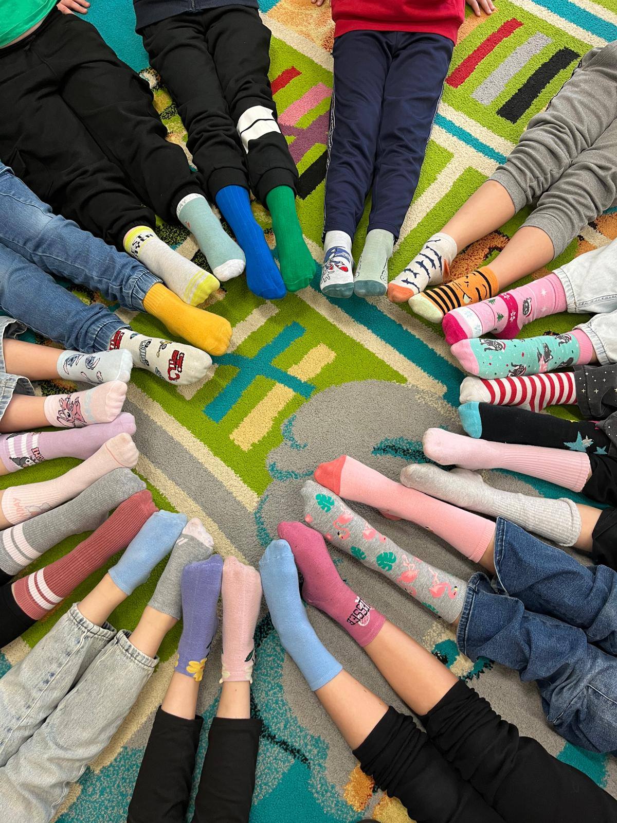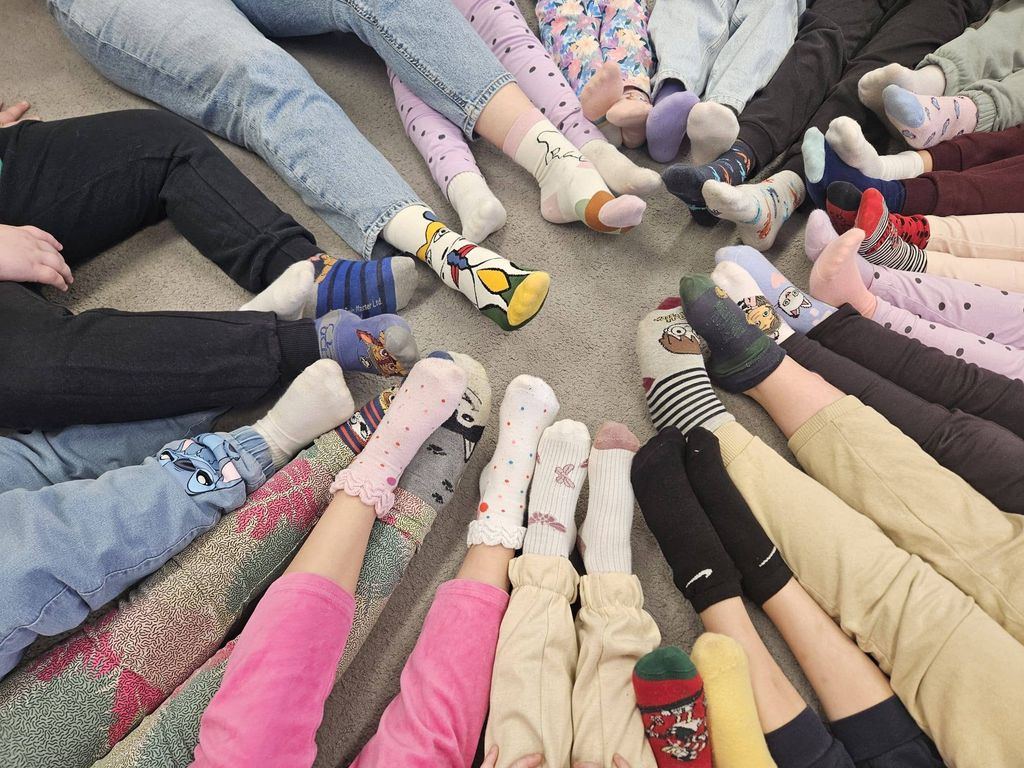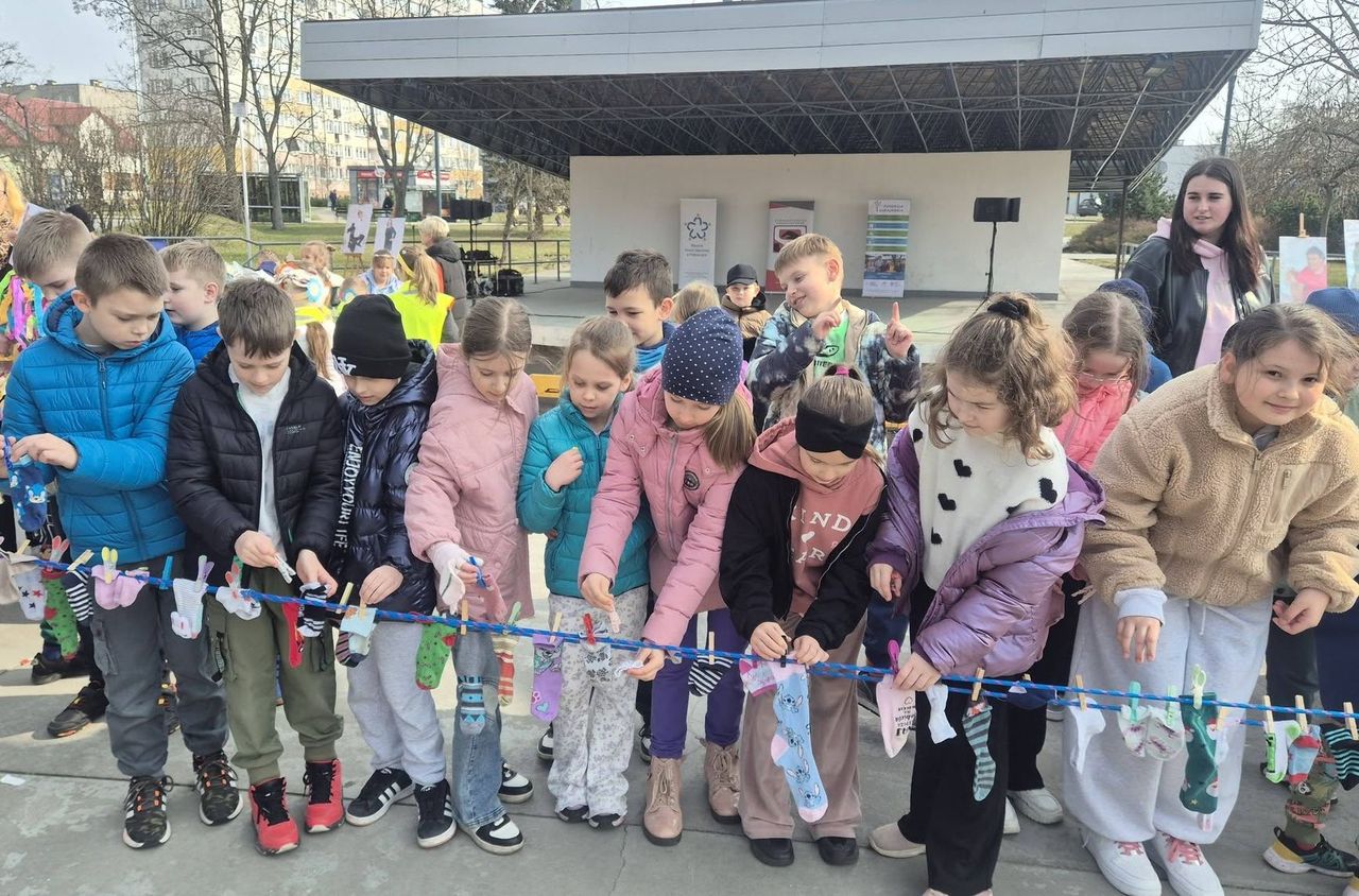 19 marca obchodziliśmy Dzień Kolorowej Skarpetki, czyli Światowy Dzień Zespołu Downa. Tego dnia wszyscy założyli na nogi kolorowe skarpetki nie do pary, jako symbol solidarności i akceptacji osób z zespołem Downa. Ponadto, z tej okazji uczniowie klas 1–3 wzięli udział w różnych działaniach plastyczno-ruchowych i czytelniczych. Kilka klas uczestniczyło również w uroczystościach zorganizowanych w polkowickim parku. Dzieci oglądały występy artystyczne oraz uczestniczyły w różnych atrakcjach przygotowanych specjalnie na ten dzień. Był to radosny i pełen pozytywnych emocji dzień, który przypomniał nam, jak ważne są szacunek, zrozumienie i życzliwość wobec innych.