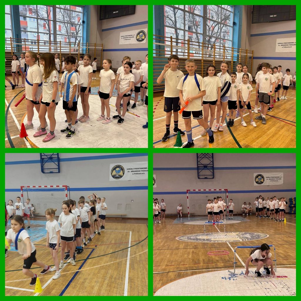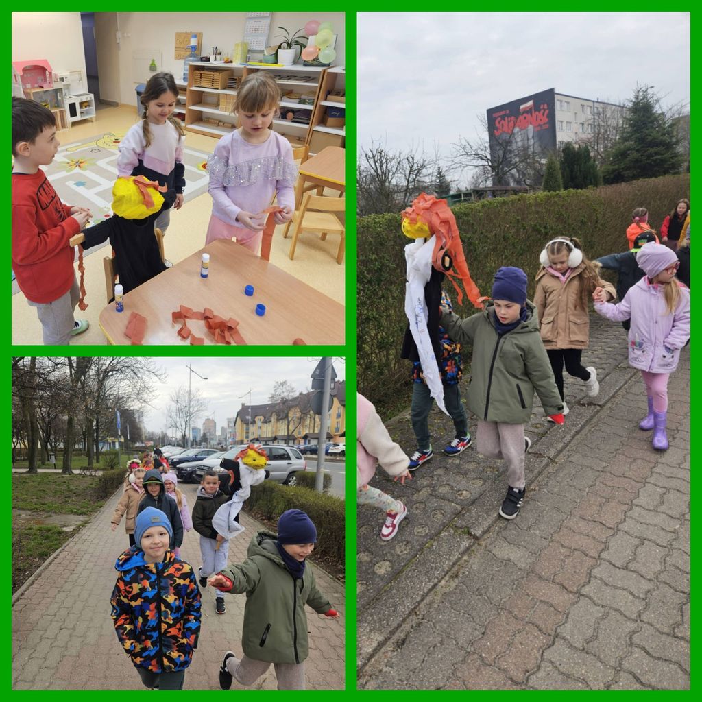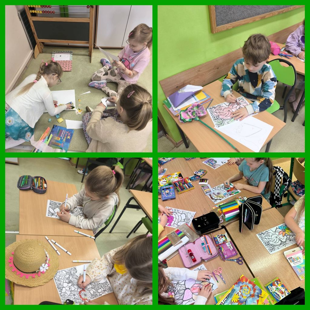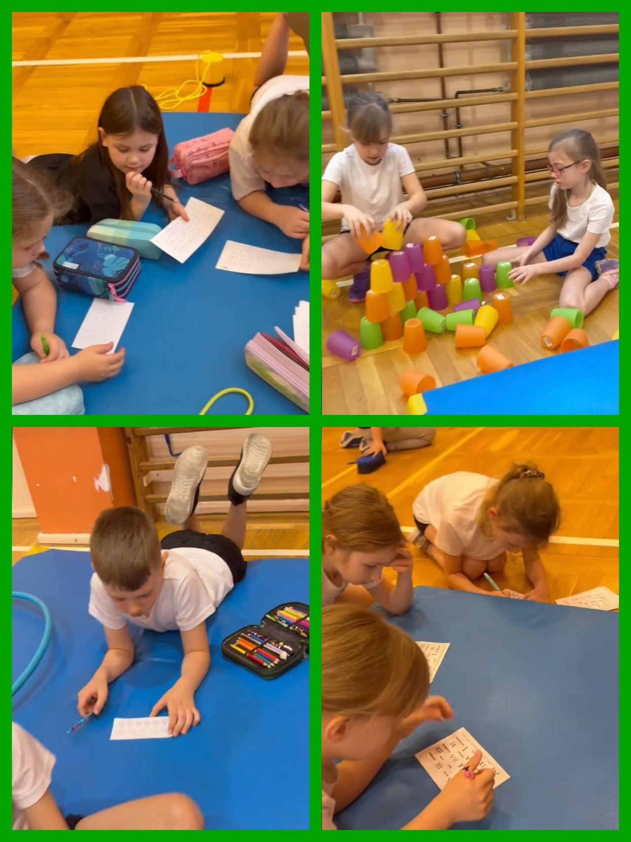 Powitanie wiosny w klasach 0–3 było pełne radości, kreatywności i aktywności. Uczniowie celebrowali nadejście nowej pory roku na wiele różnorodnych sposobów. Dzieci brały udział w zmaganiach sportowych, podczas których mogły sprawdzić swoją sprawność fizyczną i współpracę w grupie. Nie zabrakło również działań plastycznych – uczniowie przygotowywali kolorowe plakaty na powitanie Wiosny oraz tworzyli portrety Pani Wiosny, wykazując się dużą pomysłowością i zaangażowaniem. W ramach zajęć kulinarnych dzieci samodzielnie przygotowywały owocowe szaszłyki, ucząc się zdrowych nawyków żywieniowych oraz zasad bezpiecznej pracy. Dużym zainteresowaniem cieszył się także wiosenny turniej matematyczno - przyrodniczy z elementami gimnastycznymi, który połączył naukę z ruchem i dobrą zabawą. Dodatkowo uczniowie uczestniczyli w wycieczce na ogródki działkowe, gdzie mieli okazję obserwować wiosenny wzrost roślin. Dzieci aktywnie włączyły się w prace porządkowe – kosiły trawę oraz grabiły, ucząc się szacunku do przyrody i pracy fizycznej. Powitanie wiosny było dla wszystkich uczniów wyjątkowym czasem, pełnym uśmiechu, nauki i wspólnego świętowania.