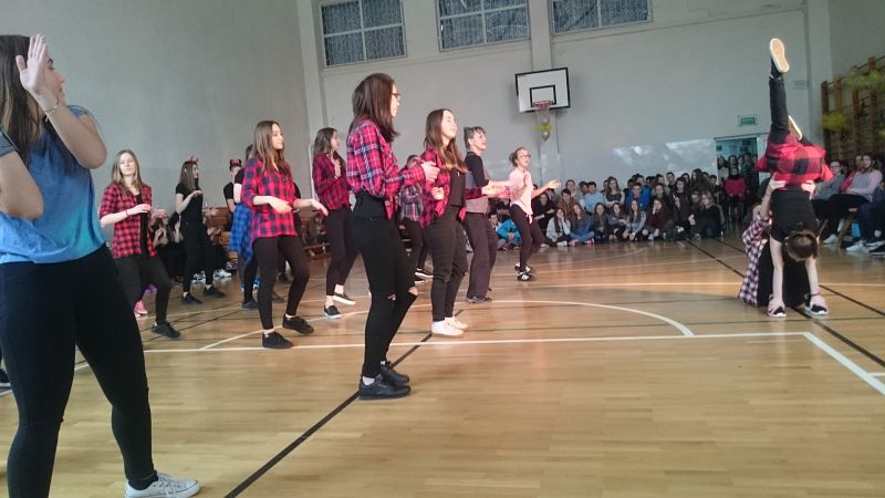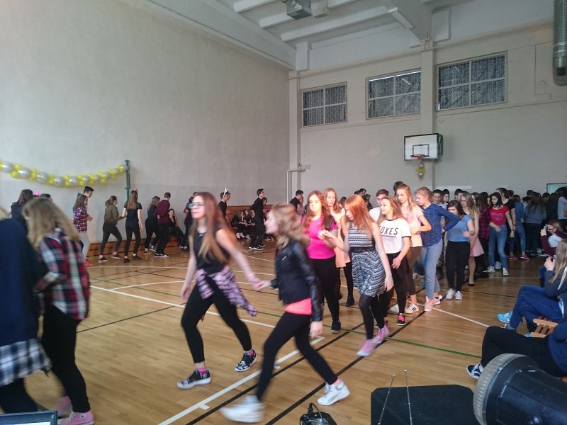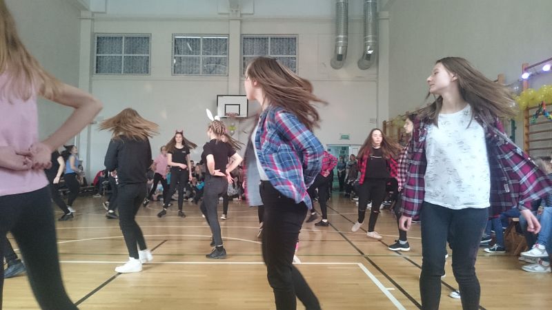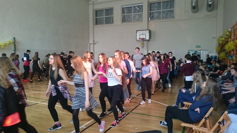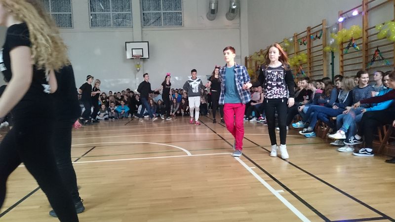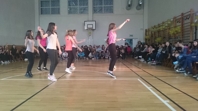 W ostatni dzień przed feriami odbył się pokaz taneczny, w którym wystąpiło prawie 70 uczniów. Układy taneczne mogli obserwować głównie uczniowie klas I i II, chociaż nie zabrakło też przedstawicieli klas III.