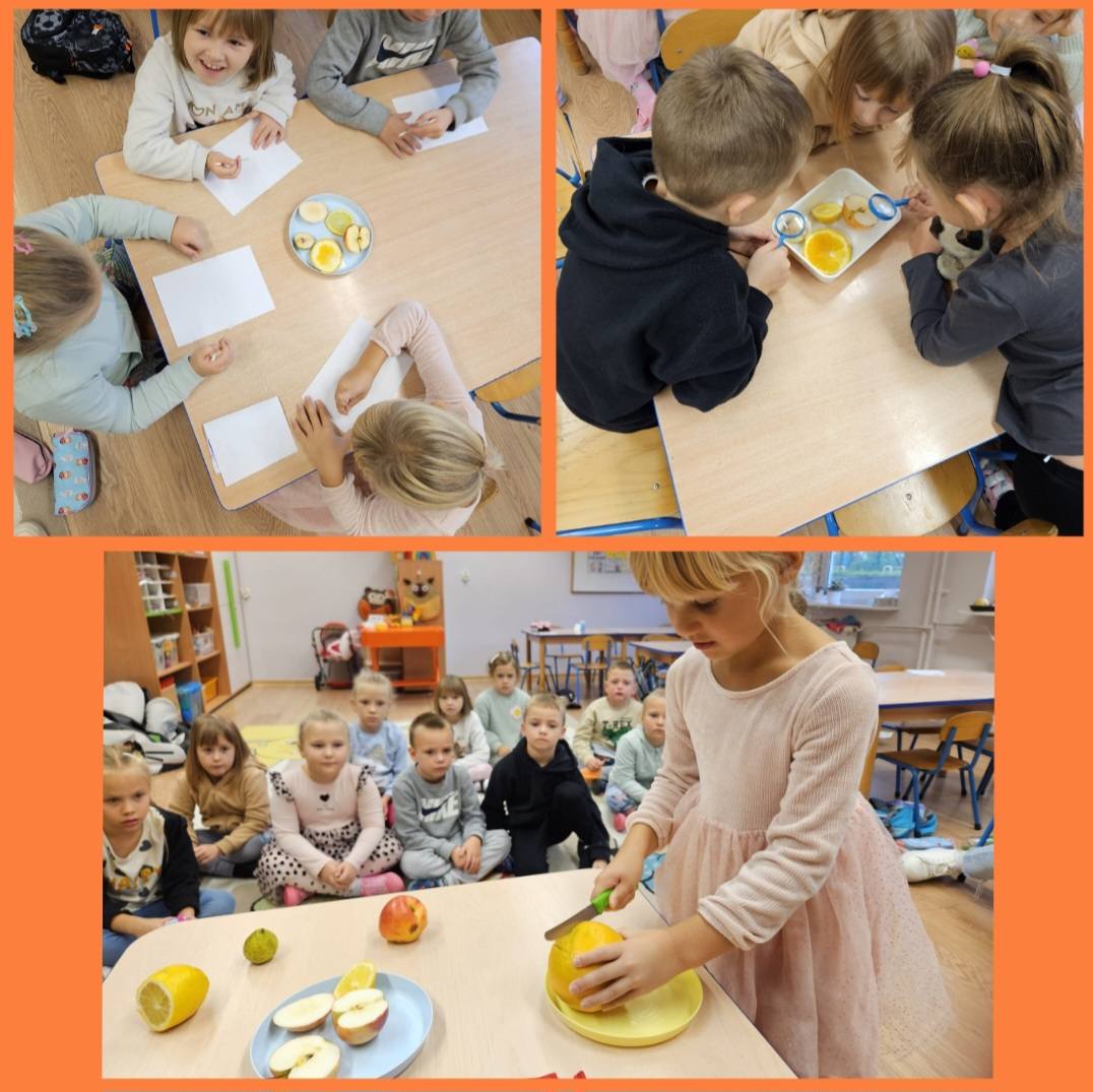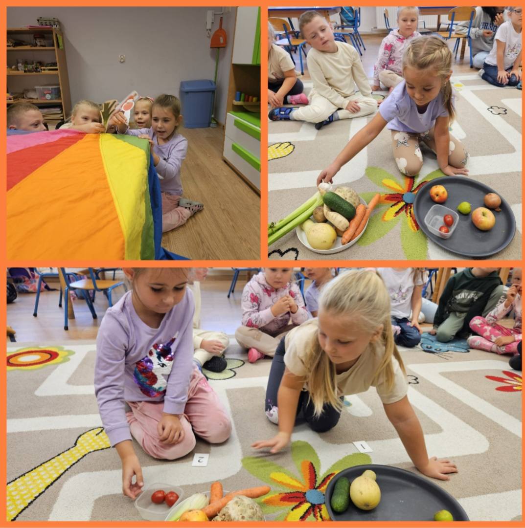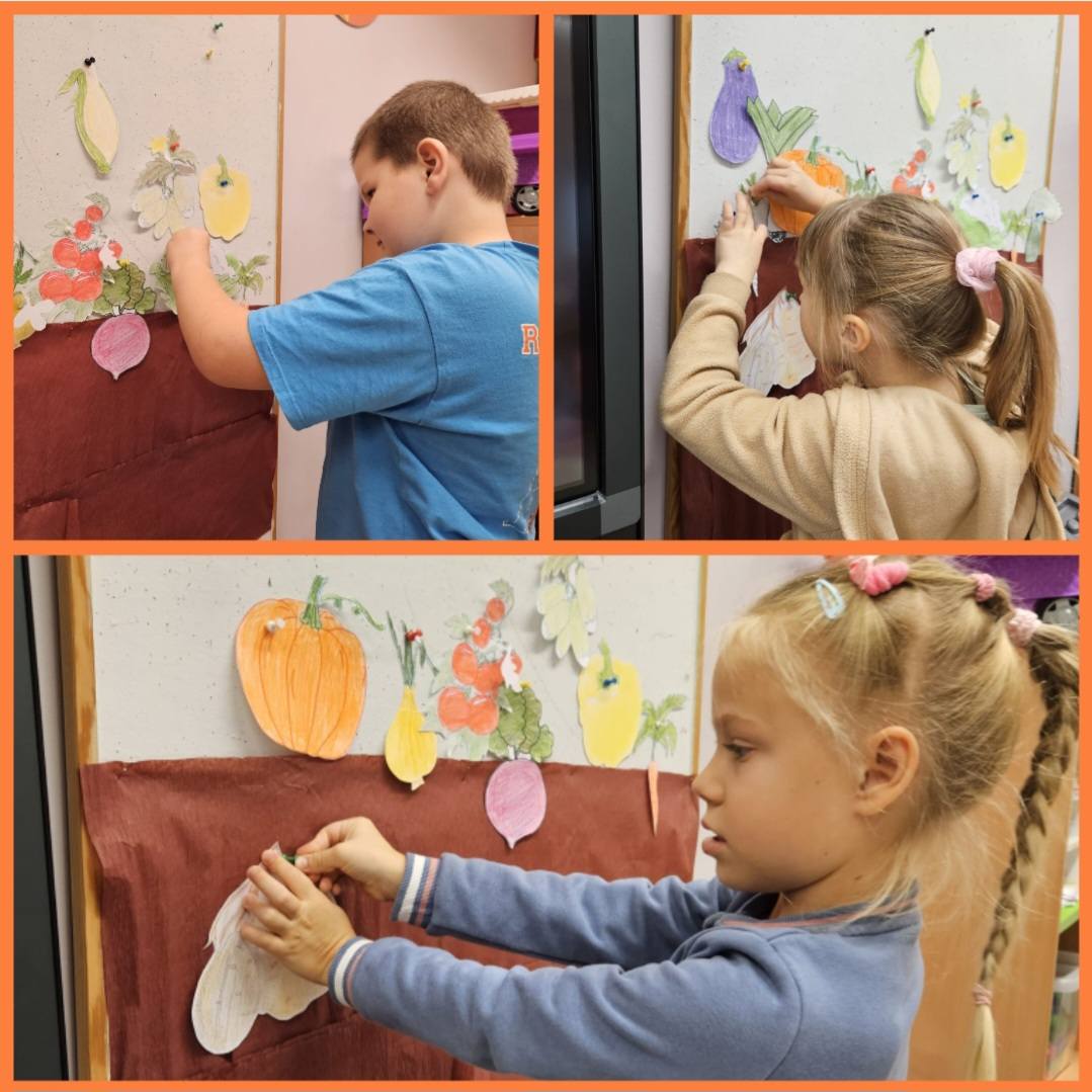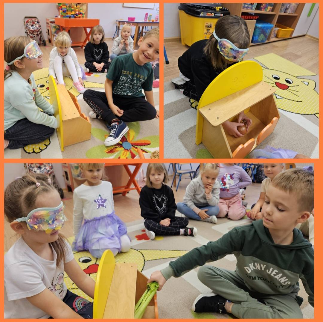 Jesień w przedszkolu to czas pełen barwnych i kreatywnych aktywności. To okres nauki przez zabawę, rozwijania wyobraźni i odkrywania uroków jesiennej przyrody. Dzieci, oprócz tworzenia jesiennych prac plastycznych, brały udział w zabawach ruchowych na świeżym powietrzu, podczas których zbierały kasztany i liście. Przedszkolaki z radością brały udział w eksperymentach i zabawach z warzywami i owocami, dzięki którym odkrywały ich niezwykłe właściwości. Pisały sekrety sokiem z cytryny, tworzyły warzywny teatrzyk, a także rozpoznawały warzywa za pomocą dotyku, rozwijając zmysły i wyobraźnię. Zabawy te wspierały ich zrozumienie zjawisk przyrodniczych w ciekawy i angażujący sposób.