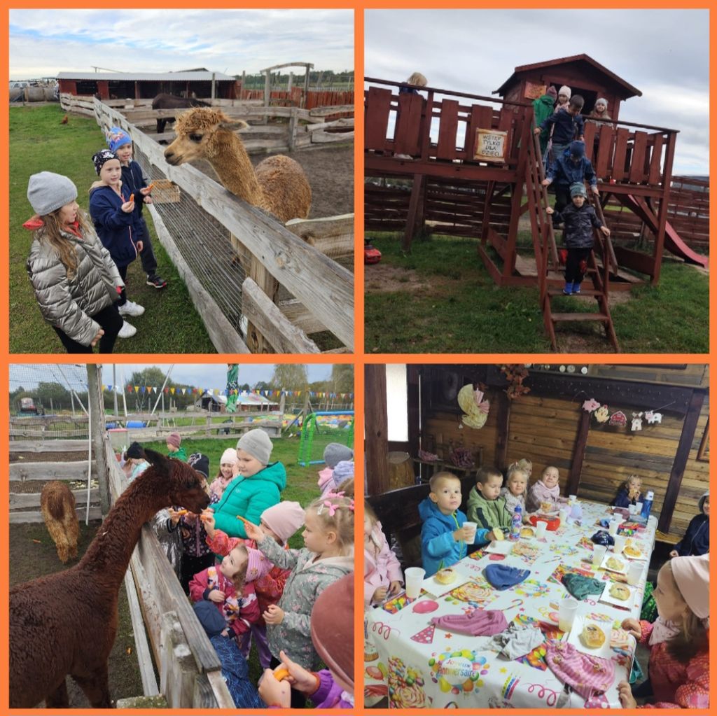 W dniu 10.10. 2024 przedszkolaki wybrały się na długo wyczekiwaną wycieczkę do ,,Osady Danieli''. Dzieci mogły poznać wiele ciekawostek dotyczących zwierząt. Miały możliwość karmienia danieli, owiec, lam, kucyków, kaczek oraz pawi. Ponadto dzieci aktywnie spędzały czas, bawiąc się na placu zabaw. Na koniec pobytu odbyła się szalona dyskoteka, był popcorn oraz Piana Party. Przedszkolaki wróciły pełne pozytywnych wrażeń.