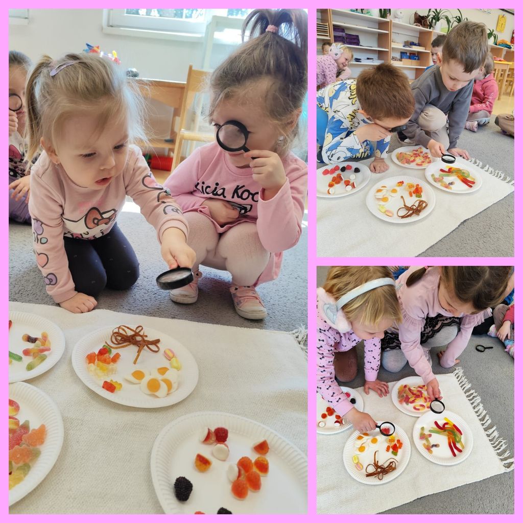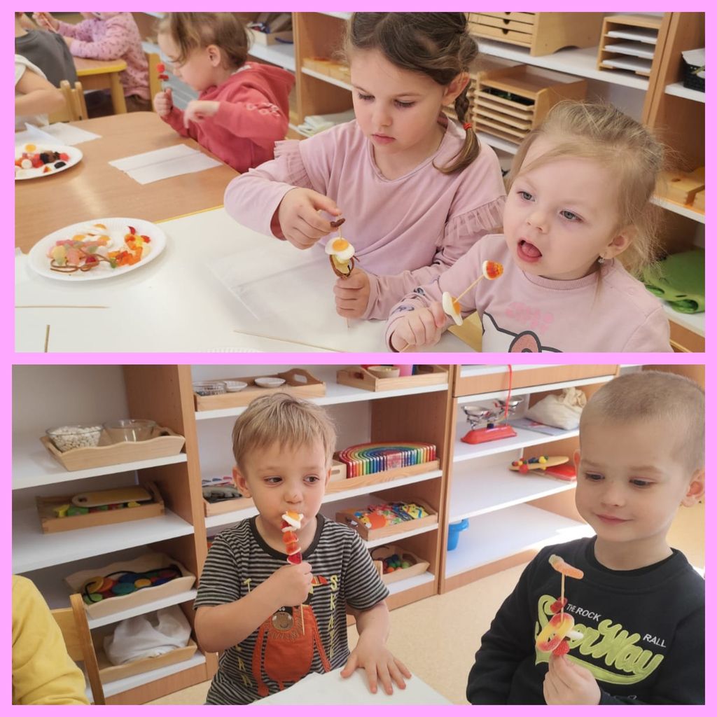 Kwaśne, zakręcone, kolorowe i uwielbiane przez wszystkie dzieci! 28 marca przedszkolaki obchodziły słodki Dzień Żelków. Dzieci dowiedziały się, jak powstają żelki. Za pomocą zmysłów określały ich kolor, zapach i kształt. Dużo radości sprawiła im zabawa ruchowo - zręcznościowa "Nawiń żelki". Każdy przedszkolak mógł również pokolorować żelowego misia według własnego pomysłu. A na koniec wszyscy wykonali i zjedli ze smakiem, pyszne żelkowe szaszłyki. To był cudowny i słodki dzień!