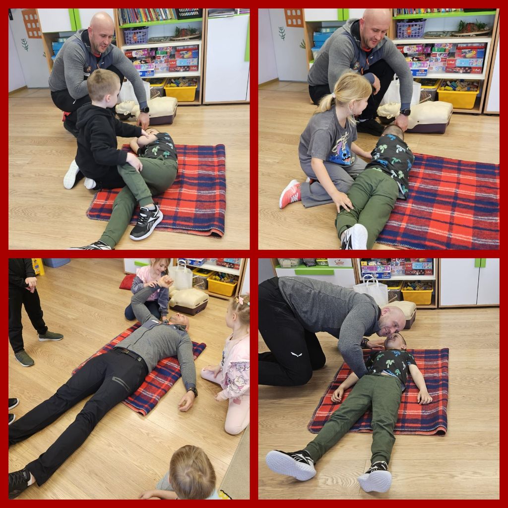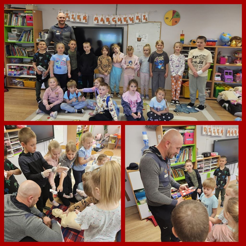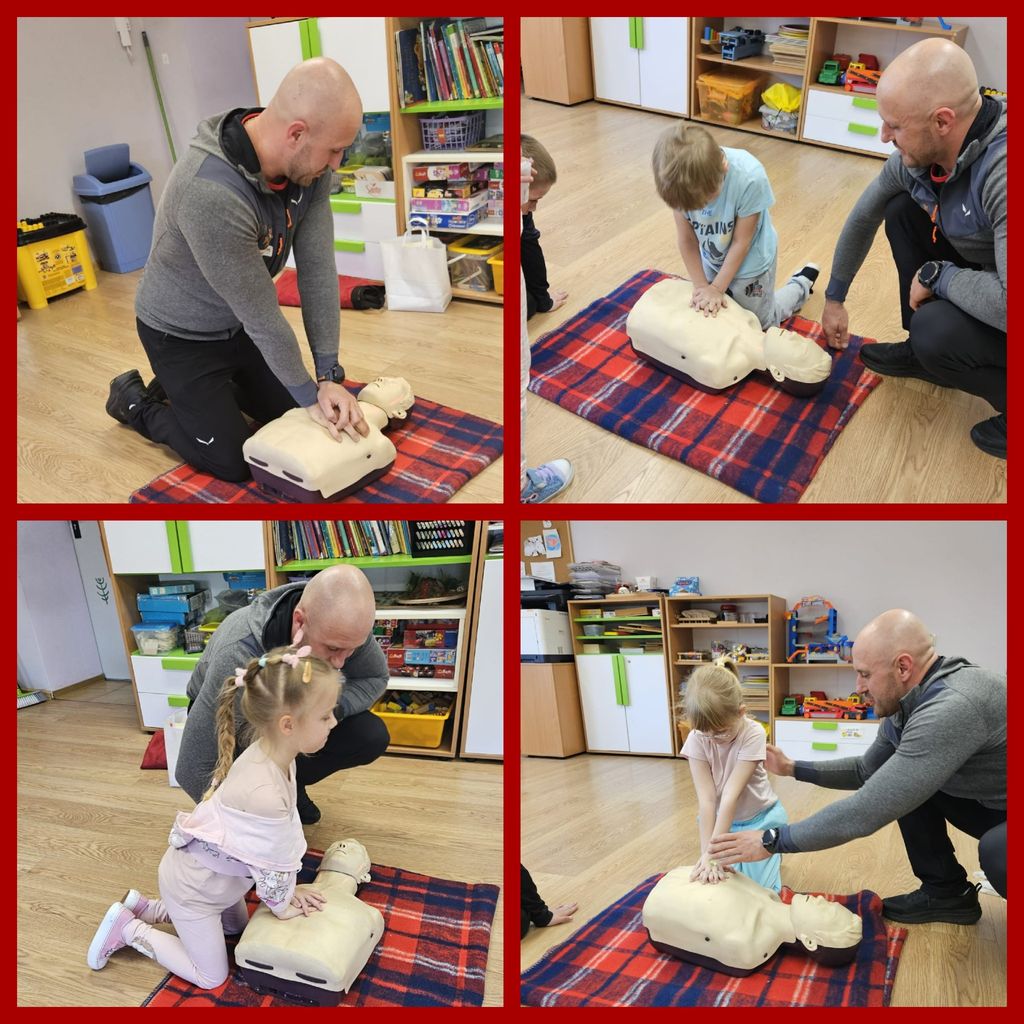 7 kwietnia w naszej grupie przedszkolnej obchodziliśmy Światowy Dzień Zdrowia, którego celem było uświadomienie dzieciom, jak istotne jest dbanie o zdrowie. Podczas zajęć plastycznych przedszkolaki miały okazję stworzyć kolorowy plakat Zdrowusia, promujący zdrowe nawyki i podstawową wiedzę na temat tego, jak dbać o zdrowie. Dzieci poznały i przypomniały sobie zasady higieny, takie jak mycie rąk, dbanie o czystość zębów, a także konieczność noszenia czystej bielizny. W ramach obchodów Dnia Zdrowia, w piątek, odbyło się spotkanie z ratownikiem górniczym, Panem Mariuszem Skupinem, podczas którego dzieci dowiedziały się, jak prawidłowo wykonać resuscytację krążeniową, jak opatrzyć ranę oraz czym jest pozycja boczna ustalona i w jakim celu układa się osobę w tej pozycji. Krok po kroku przedszkolaki zapoznały się z procedurami udzielania pierwszej pomocy, aby mogły zadbać o swoje bezpieczeństwo i pomóc poszkodowanym. Przypomniano także o numerze alarmowym 112 (1 usta, 1 nos i 2 oczu), który warto znać, by w razie potrzeby wezwać pomoc. Pamiętajmy, jak ważne jest nasze zdrowie i bezpieczeństwo!