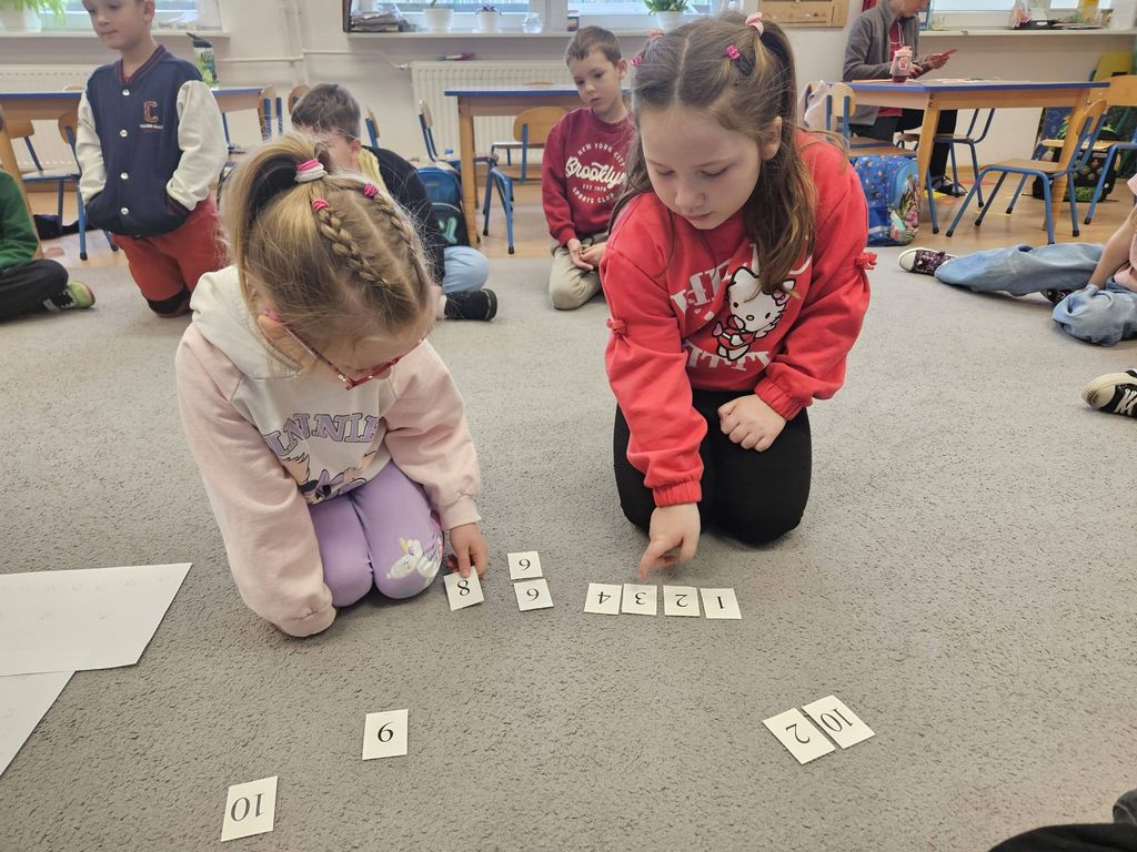 Z okazji Dnia Matematyki dzieci w naszym przedszkolu brały udział w wielu ciekawych i rozwijających aktywnościach. Przedszkolaki układały rytmy z nut, ćwicząc logiczne myślenie i spostrzegawczość. Poznawały również różne sposoby mierzenia – używały miarki, sznurka, a także mierzyły długość stopą lub łokciem. Dzieci porównywały wielkości różnych przedmiotów oraz wykonywały proste działania matematyczne na dodawanie i odejmowanie. Nauka przez zabawę sprawiła wszystkim wiele radości! Również z tej okazji, trzy dziewczynki: Nel, Klara oraz Marysia, wzięły udział w Międzyprzedszkolnej Olimpiadzie Matematycznej ,,Mały Matematyk" zorganizowanej przez Przedszkole Miejskie nr 3, podczas której pięknie reprezentowały naszych przedszkolaków. Była to wspaniała okazja do sprawdzenia swoich umiejętności, dobrej zabawy i wspólnego świętowania matematyki. Gratulujemy wszystkim małym matematykom!