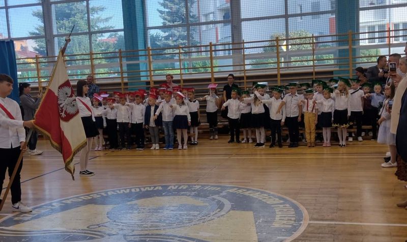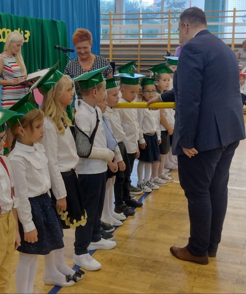Pierwszego września, jak co roku, uczniowie klas pierwszych z wielkim zapałem rozpoczęli naukę w naszej szkole. Ogromnym przeżyciem w tym dniu okazało się dla nich Pasowanie na Ucznia. Uroczyste ślubowanie złożyli uczniowie klas Ia, Ib i Ic. Pasowanie, to jedno z najważniejszych wydarzeń w szkolnym życiu każdego pierwszoklasisty. Od tego dnia każde dziecko czuje się już prawdziwym uczniem, czyli pełnoprawnym członkiem szkolnej rodziny. Uczniowie klas pierwszych ślubowali być godnymi Polakami i wzorowymi uczniami. W ten sposób oficjalnie zostali przyjęci do grona uczniów naszej szkoły. Największym przeżyciem był dla dzieci moment pasowania. Burmistrz gminy - Pan Łukasz Puźniecki, poprzez dotknięcie ogromnym, zaczarowanym ołówkiem ramienia każdego pierwszoklasisty - zamieniał go w prawdziwego ucznia. Na koniec dzieci otrzymały słodkie niespodzianki, ufundowane przez Urząd Gminy oraz Radę Rodziców, a także pamiątkowe dyplomy. To był wyjątkowy dzień dla naszych najmłodszych wychowanków! Życzymy im sukcesów i przyjemnego pobytu w murach naszej szkoły.