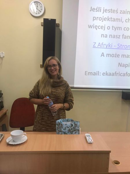 W ramach tytułowego projektu w naszej szkole 27 września odbyło się pierwsze spotkanie z ciekawą osobą z kraju i ze świata. Absolwentka naszej szkoły – Pani Agnieszka Musiguzi – Żukowska od 9 lat pracuje wraz ze swym mężem na misjach w Ugandzie. Misjonarka zabrała uczniów klas VII i VIII w wirtualny świat Afryki. Uczniowie mogli zobaczyć położenie geograficzne Ugandy, dowiedzieć się na temat klimatu, zwyczajów oraz problemów ekonomicznych i edukacyjnych.