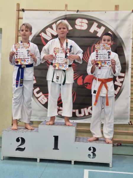 Podczas Mistrzostw Województwa Zachodniopomorskiego w Karate Kyokushin Kenbukai Washi Cup, nasza ekipa w składzie Amelia Karkos zajęła 1 miejsce w kategorii kumite, Bartek Loret 1 miejsce w kata i kumite, Igor Całus 3 miejsce w kata i 1 w kumite, Oliwier Pilichowski 3 miejsce w Kumite, Jakub Bajus 1 miejsce w Kumite oraz Matvii Shevchenko jako debiutant 4 miejsce w kategorii Kumite. Wszystkim bardzo serdecznie gratulujemy Osu!!!