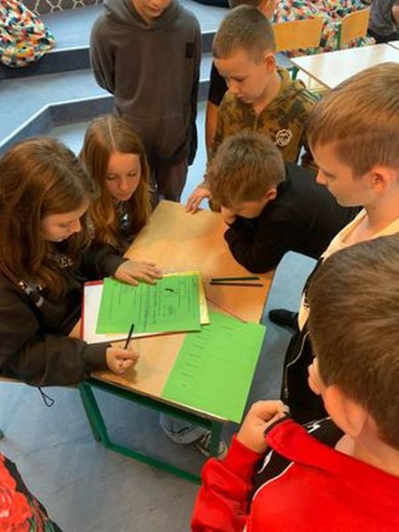 26 października odbyła się gra ekologiczna zaprojektowana w ramach realizacji projektu „Young Dialogue And Change Maker – budujemy dialog wokół wyzwań klimatycznych” (ffis.edu.pl/young-dialogue/) przez uczniów Szkoły Podstawowej nr 3 oraz Katolickiej Szkoły Podstawowej w Polkowicach. Naszymi gośćmi byli uczniowie klas trzecich ze szkół w Polkowicach i Jędrzychowie. Podczas gry uczniowie zdobywali punkty, wykonując zadania na przygotowanych stanowiskach m.in rozwiązywali krzyżówki, quizy, segregowali papier, plastik i szkło. Punkty zostały policzone na koniec gry, a zwycięzcami została klasa trzecia Katolickiej Szkoły Podstawowej. Drugie miejsce zajęła Szkoła Podstawowa nr 3, a trzecie miejsce wywalczyła Szkoła Podstawowa nr 2. Wszyscy uczniowie bardzo zaangażowali się w rozwiązywanie zadań. Uczestnicy zabawy otrzymali drobne upominki, dodatkowo każda drużyna dostała dwa krzewy rokitnika, które niebawem zostaną posadzone obok szkół. Gratulujemy wygranym, a wszystkim bardzo dziękujemy za obecność i zaangażowanie.