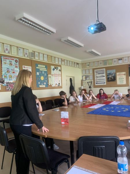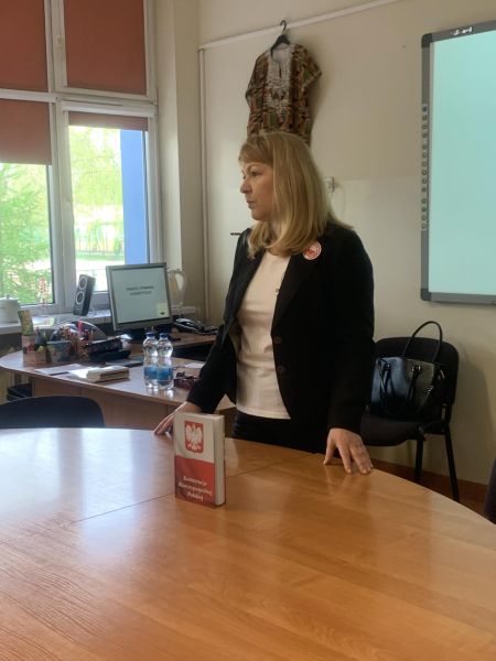 8 kwietnia klasy VIII na lekcji wiedzy o społeczeństwie uczestniczyły w debacie na temat: Prosto i otwarcie o konstytucji, którą prowadziła Pani Liliana Cydejko – Lider ruchu społecznego „TERAZ Twój Ruch”. Uczniowie dyskutowali na temat swoich praw i obowiązków zawartych w Konstytucji RP. Dziękujemy bardzo Pani Lilianie za podzielenie się swoim doświadczeniem i za poświęcony dla nas czas.