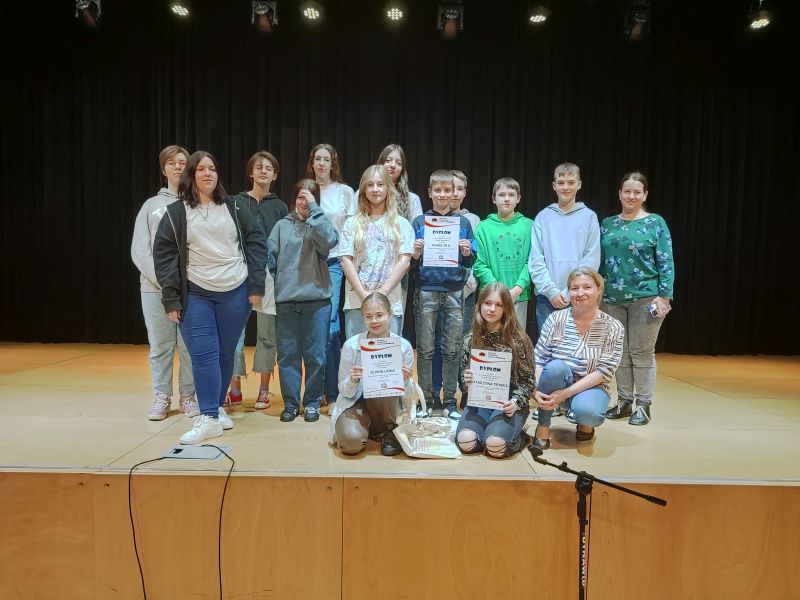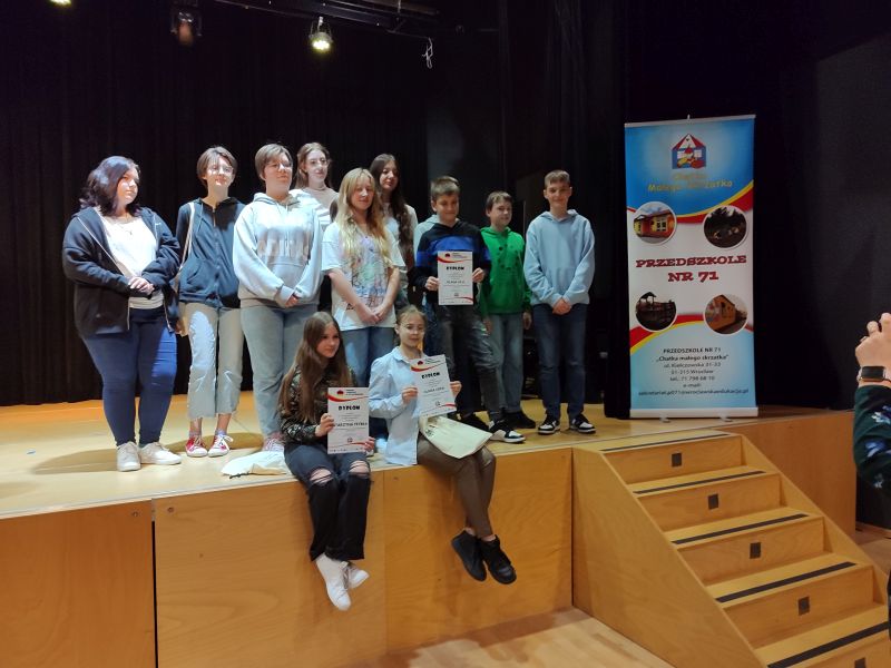 18 kwietnia uczniowie naszej szkoły wystąpili na scenie Centrum Kulturalno – Bibliotecznego FAMA we Wrocławiu w X Przeglądzie Twórczości w Języku Niemieckim. Nasza szkoła – reprezentowana przez grupę uczniów z klasy VII a i Katarzynę Trybkę z klasy VI a - należała do 27 placówek oświatowych (przedszkoli, szkół podstawowych, średnich) biorących udział w przeglądzie. Kasia zaprezentowała muzyczną wersją wiersza „Erlkönig” Johanna Wolfganga von Gothego, a Oliwia Lidka z kl. VII a wyrecytowała ten sam wiersz w języku polskim, w przekładzie Wisławy Szymborskiej - polski tytuł „Król Olch”. Występ Oliwii urozmaicono ilustracjami do wiersza, wykonanymi przez Zuzannę Mikołajczyk z klasy VII a. Dodatkowo uczniowie zaprezentowali piosenkę „Der Körperteile Blues.” Występy naszych uczniów bardzo podobały się publiczności i organizatorom. Wszyscy uczestnicy otrzymali nagrody oraz pamiątkowe dyplomy. Gratuluję uczniom i dziękuję wszystkim, którzy pomogli w przygotowaniach: pani Joannie Glapińskiej i pani Justynie Trybce, a pani Jolancie Baran za opiekę nad uczniami w trakcie pobytu we Wrocławiu. Dziękuję też Dyrekcji naszej szkoły, za umożliwienie wyjazdu na Przegląd.