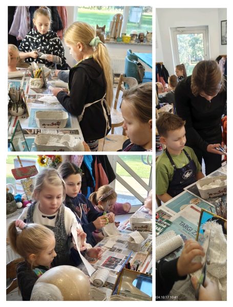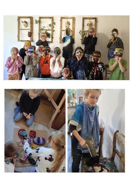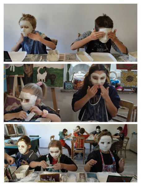 17 października uczniowie będący pod opieką pedagoga – p. Marleny Rudnickiej i psychologa – p. Sary Łago wzięli udział w wyjazdowych warsztatach integracyjnych. Pierwszą częścią programu był wspólny spacer po lubińskim „Parku Wrocławskim” i spotkanie z jego mieszkańcami, co wywołało w uczniach wiele przyjemnych emocji. Kolejnym punktem wycieczki były warsztaty artystyczne w pracowni EcoArt pod kierunkiem p. Bernardy Gołąb. Dzieci wykonywały na sobie kreatywne i tajemnicze maski gipsowe. Na zakończenie zorganizowano wyjście na pyszną pizzę do restauracji „Verona”. Kolejne zajęcia z p. Bernardą będą kontynuowane w placówce szkolnej, a prace naszych artystów będzie można podziwiać w budynku przy ul. Kominka.