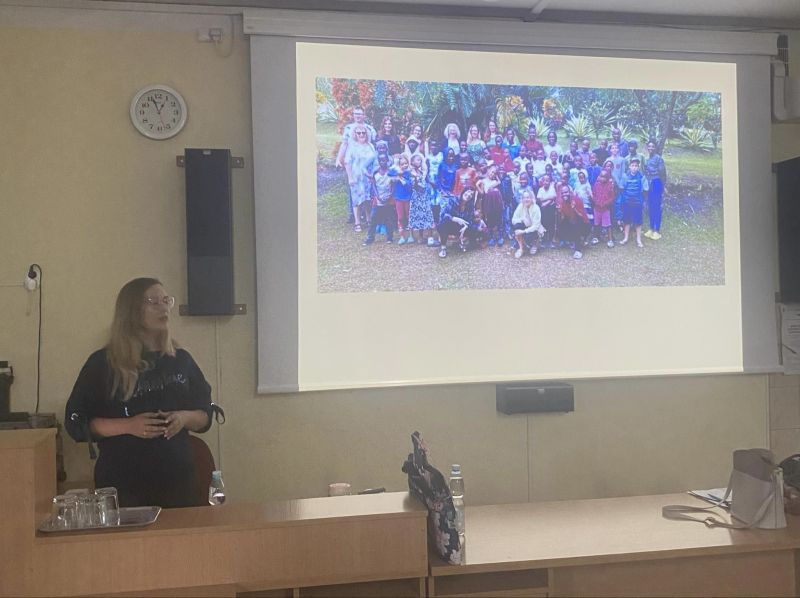 W ramach projektu „Dotykamy ręką świat” odwiedziła naszą szkołę absolwentka - misjonarka Agnieszka Musinguzi - Żukowska. Młodzież klas VII i VIII została zabrana w wirtualną podróż do Afryki, gdzie usłyszała historie niektórych dzieci - Angel, Victorii, Miracle, które są po opieką Fundacji EKA AFRICA oraz pomoc niesiona przez te fundację wielu osobom biednym, chorym i samotnym.