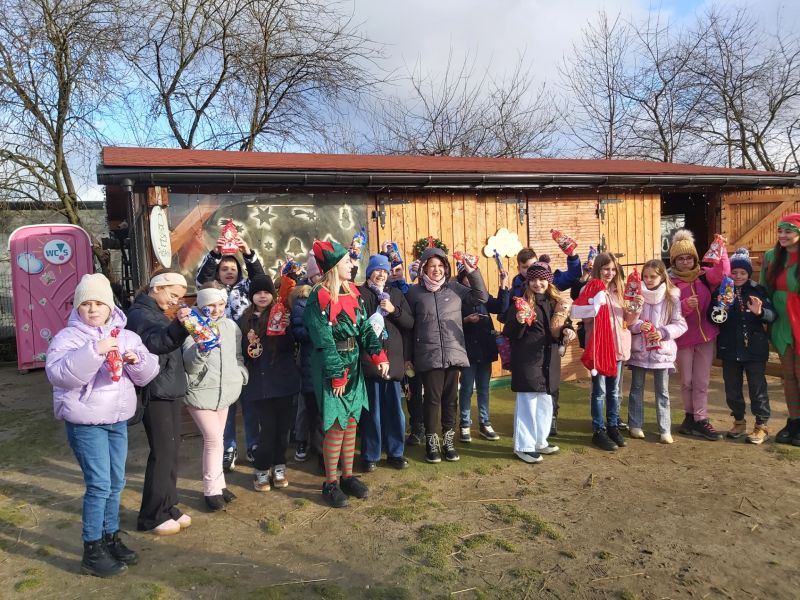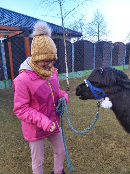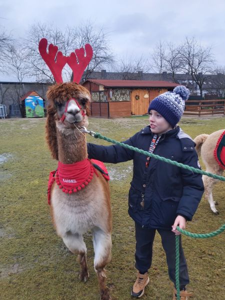 Klasa 4A wybrała się, 4 grudnia, na warsztaty mikołajkowo-świąteczne do Obory koło Lubina. Było zdobienie pierników i bombek, gry i zabawy, prezenty, ale najważniejsze było spotkanie z alpakami. Pani z „PleciAnki” opowiedziała o hodowli i zwyczajach alpak. A następnie każdy mógł pospacerować z alpaką, pogłaskać ją, przytulić i nakarmić smakowitą marchewką.
