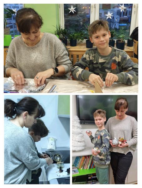 W okresie przedświątecznym zrealizowane zostały warsztaty artystyczne, które łączyły rodziców, opiekunów i uczniów we wspólnym działaniu. Uczestnicy tworzyli własnoręcznie dekorowane bombki oraz ekologiczne świece sojowe. Dzięki temu wszyscy mogli spędzić czas w kreatywny sposób, z dala od codziennych obowiązków. Sprzyjało to budowaniu więzi i celebrowaniu chwil. Wykonane bombki i świece stały się nie tylko pięknymi ozdobami, ale wyjątkowymi pamiątkami. To była doskonała okazja do integracji oraz sposób do wprowadzenia w świąteczny nastrój. Dziękujemy za obecność wszystkim uczestnikom, a Radze Rodziców za wsparcie finansowe na zakup materiałów.