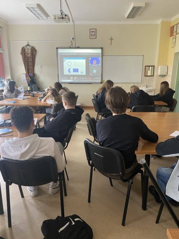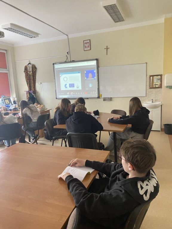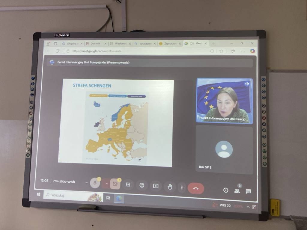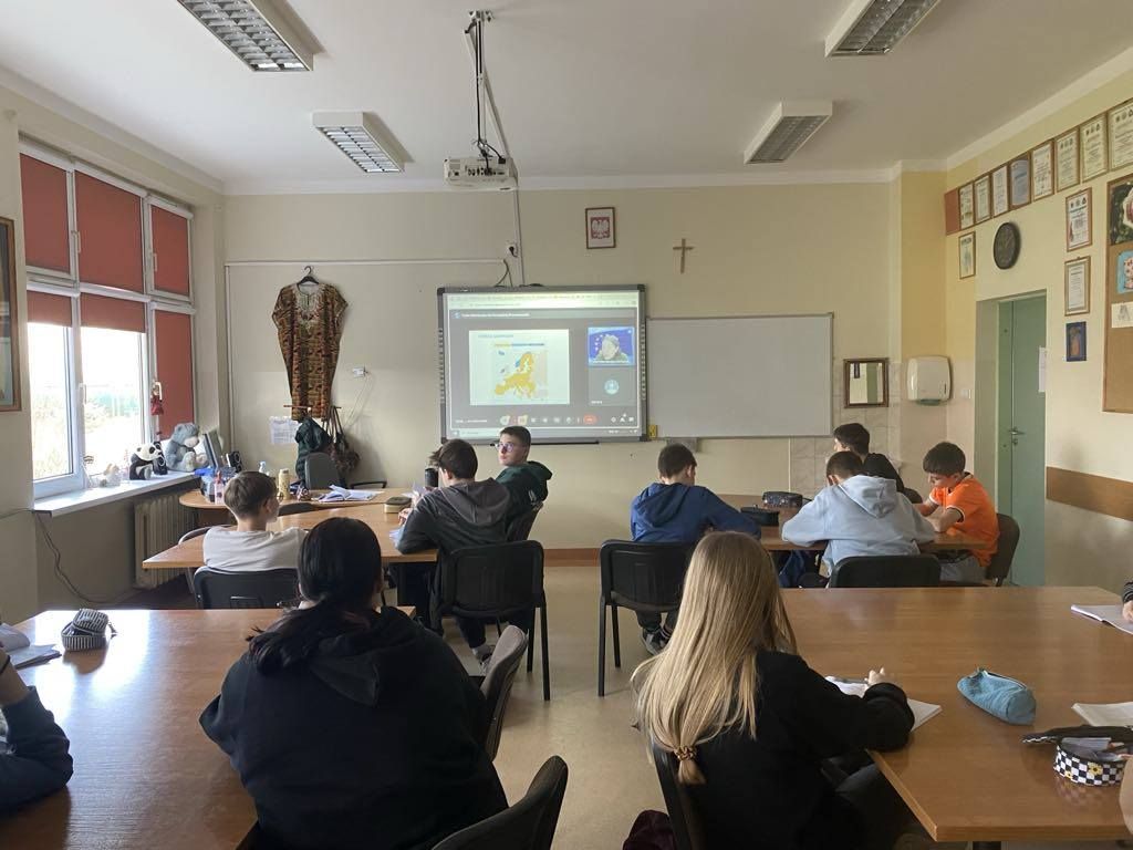 W pierwszym tygodniu marca na lekcjach wiedzy o społeczeństwie odbyły się zajęcia online prowadzone przez pracownika Domu Europy we Wrocławiu. Uczniowie poznali genezę Unii Europejskiej oraz jakie korzyści ma Polska jako jeden z krajów należących do UE. Zrozumieli też znaczenie Strefy Schengen oraz program Erasmus Plus dla uczniów i nauczycieli.