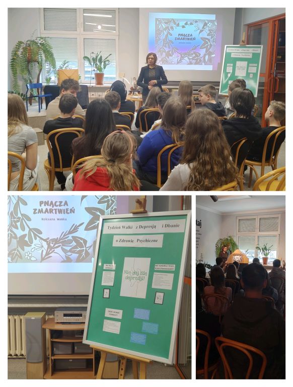 Nie zabrakło również aktywnych i tanecznych przerw. Dodatkowo wychowawcy klas IV-VI przeprowadzili zajęcia na podstawie otrzymanych materiałów, pt. „Porozmawiajmy o depresji”, a w klasach VII i VIII zostały poprowadzone przez psychologów i bibliotekę szkolną warsztaty profilaktyczne w nawiązaniu do zdrowia psychicznego i depresji.