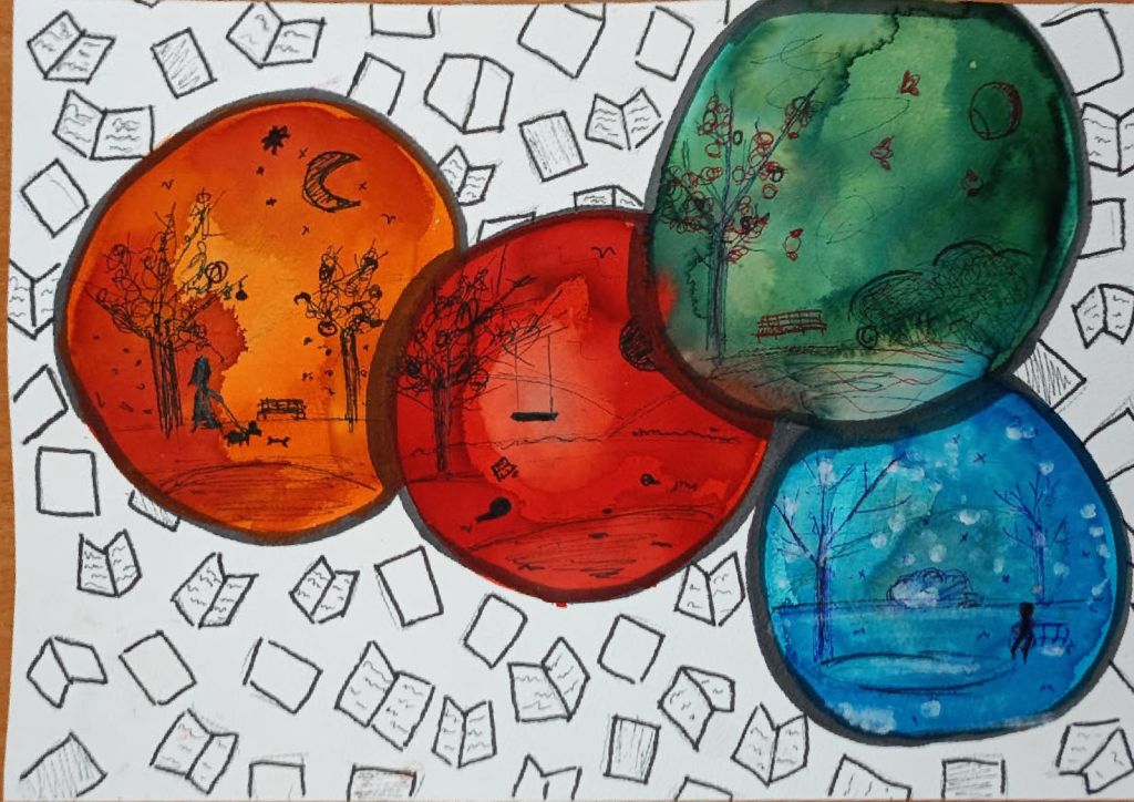 Znamy wyniki XVI konkursu plastycznego – edycja dolnośląska - „Artystyczne cztery pory roku z książką” na projekt elementu graficznego, promującego Bibliotekę w Polkowicach, książkę i czytelnictwo. Wśród nagrodzonych osób znalazły się uczennice naszej szkoły. W kategorii 8-9 lat pierwsze miejsce zajęła Marta Rzepecka z kl. 1b, a trzecie Mia Koszewar z kl. 1b W kategorii 10 – 13 lat pierwsze miejsce zajęła Wiktoria Krawczuk z kl. 5c, której pracę możemy zobaczyć na zdjęciu. Zwycięska grafika powstała na zajęciach koła plastycznego.