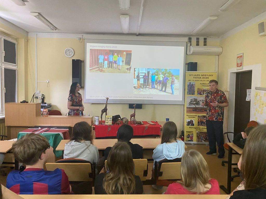 29 kwietnia w ramach projektu „ Dotykamy ręką świat” klasy VII i VIII uczestniczyły w misyjnym spotkaniu. Misjonarze - Karolina i Tomasz Bobrowscy opowiadali o swej pracy w sierocińcach w Kenii. Młodzież z zainteresowaniem słuchała o warunkach życia swoich rówieśników w Afryce.