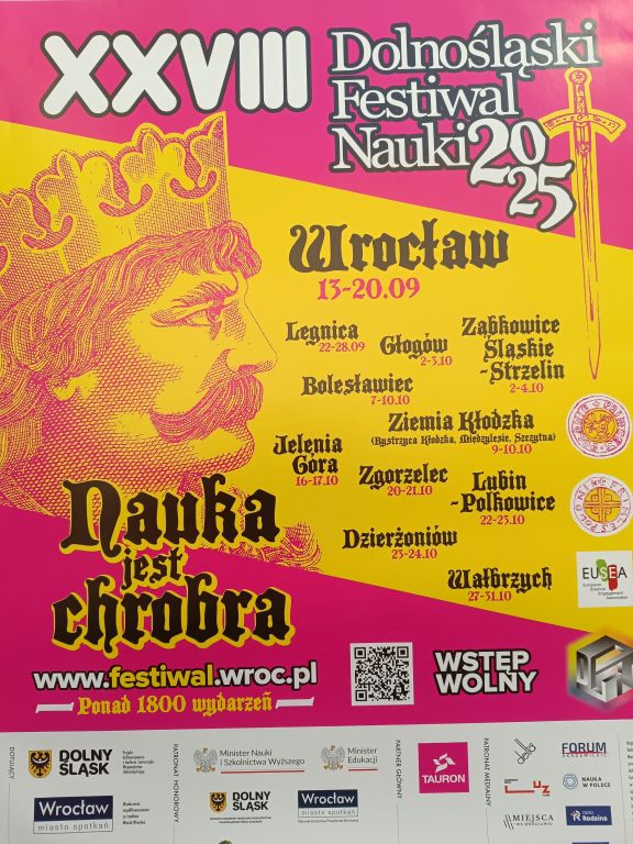 Pod tym tytułem, nawiązującym do 1000-lecia koronacji Bolesława Chrobrego, odbywa się w tym roku Dolnośląski Festiwal Nauki, w którym wzięła udział grupa 29 uczniów z klas 7 i 8 z dwoma opiekunami. 15 września na Wydziale Chemii Uniwersytetu Wrocławskiego wysłuchaliśmy ciekawego wykładu na temat „Żywności suszonej naukowo”. Dodatkową atrakcją było spróbowanie wielu liofilizowanych owoców oraz dotknięcie astropierogów wykonanych według oryginalnej receptury, stworzonej na potrzeby misji kosmicznej polskiego atronauty. Druga część wycieczki to zajęcia warsztatowe, podczas których odwiedziliśmy wiele pracowni instytutu chemicznego, m.in. pracownię rezonansu magnetycznego, spektroskopii, chromatografii, chemii organicznej i analitycznej. Wyjazd stworzył uczestnikom możliwość poznania i przybliżenia różnych obszarów chemii przez praktyczne doświadczenia oraz interakcję ze studentami i naukowcami dzielącymi się swoją pasją.
