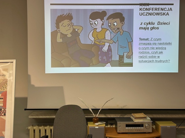 Odbyła się już XXIX debata uczniowska pod hasłem Dzieci mają głos. W środę 12 listopada 2025 r. uczniowie wzięli udział w dyskusji na temat: Z czym zmagają się nastolatki o czym nie wiedzą rodzice, czyli jak radzić sobie w sytuacjach trudnych? Oczywiście nasi uczniowie jak zwykle stanęli na wysokości zadania i mieli do zaoferowania wiele ciekawych wypowiedzi, przemyśleń w powyższym temacie, który okazał im się bardzo bliski i powszechny. Do dylematów nastolatków uczniowie zaliczyli: problemy miłosne, jak się ubrać, problemy relacyjne z rodzicami, różne lęki, poniżanie, hejt, dużo nauki, wybór szkoły średniej. Wymienili, co wpływa na sposób radzenia sobie z tymi problemami, m.in.: doświadczenia z przeszłości, wsparcie, emocje, czy to jest jedna taka sytuacja czy jest ich więcej, podejście do problemu, zachowanie, problemy rodzinne, czerpanie złych nawyków. Obejrzeli także filmik, na którym inni nastolatkowie podzielili się swoimi troskami, o których nie chcą mówić rodzicom. Ponadto poznali style radzenia sobie w trudnych sytuacjach i próbowali poddać pod dyskusję, które stosują najczęściej, a także które są akceptowalne bardziej i mniej. Na pytanie dlaczego nastolatki nie mówią rodzicom odpowiadali: z obawy o karę, konsekwencje, krytykę. Myślą, że rodzice nie zrozumieją, boją się innej reakcji niż oczekują lub w ogóle reakcji, większej kontroli, wolą rozmawiać z rówieśnikami w swobodnej atmosferze, wolą też czasem zostawić tylko dla siebie, najczęściej wystarczają pogaduchy ze znajomymi, rodzice mogą zbagatelizować sprawę a dla mnie jest, np. bardzo ważna i się zdenerwuję tylko. Niektórzy również mogliby nie mówić z obawy o swoje bezpieczeństwo, jeśli rodzina jest dysfunkcyjna. Skonfrontowaliśmy powyższe wypowiedzi uczniów z poczuciem odpowiedzialności, właśnie w sytuacjach, gdy mierzymy się z problemami i jaki to ma wpływa na nasze życie. Podsumowaliśmy kwestię dlaczego warto mówić rodzicom. Dorosły też przechodził ten etap i dojrzalsze spojrzenie na życie, więc często może nas zaskoczyć wieloma rozwiązaniami, podczas gdy dziecko nie widzi wyjścia z sytuacji, a o dobre relacje w rodzinie muszą dbać wszyscy. Znajomi są, jutro ich nie ma a rodzice towarzyszą nam na każdym etapie i o te relacje warto dbać każdego dnia. Jasno wybrzmiało na koniec, że mamy prawo do błędów, zwłaszcza młodzież, bo dopiero uczą się stawiać czoło wszelkim przeciwnościom. A co najważniejsze, losowe potyczki nie świadczą o tym, że jesteśmy mniej wartościowi, bo popełnianie błędów to tylko droga do samorozwoju i w niczym nam nie umniejsza.