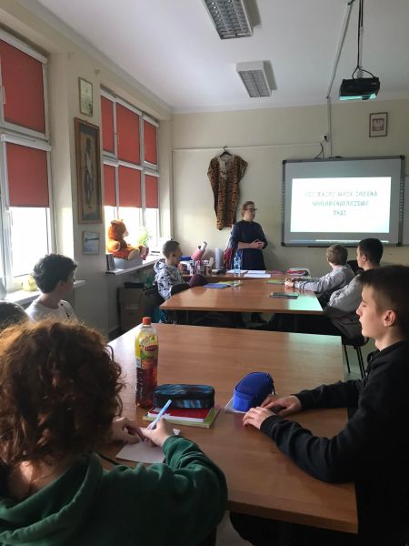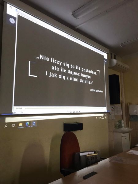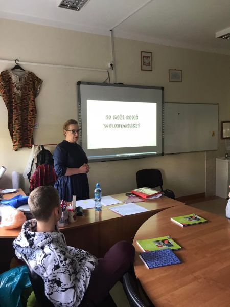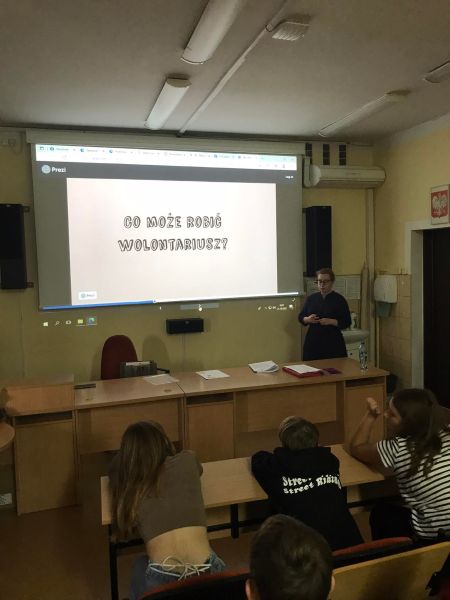 21 października uczniowie klas VIII uczestniczyli w spotkaniu z pracownikiem Centrum Kultury i koordynatorem Centrum Polkowickiego Wolontariatu – Panią Sylwią Czarnik. Poprzez wykład i prezentacje multimedialne słuchacze mogli się dowiedzieć więcej na temat czym jest miejski wolontariat, jakie cechy powinien posiadać wolontariusz , komu i jak można pomagać oraz jakie działania wolontariatu realizowane są w gminie Polkowice.
