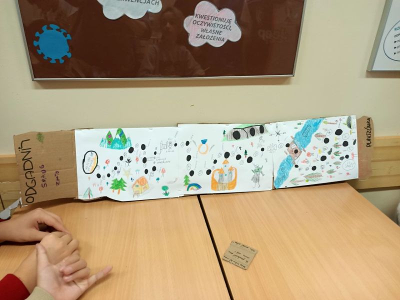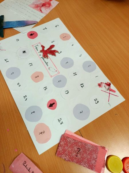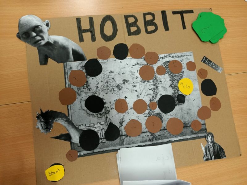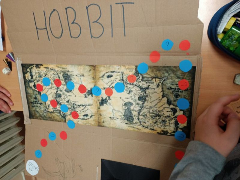 Na podsumowanie lektury ,,Hobbit, czyli tam i z powrotem" uczniowie klasy 6 c wykonali własne gry planszowe. Były zapisy instrukcji, pytania i zadania, a nawet nagroda w postaci małego, tekturowego miecza. Oto efekty.