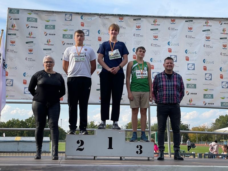 Zawodnik LKS Polkowice, uczeń naszej szkoły Michał Kuziemka wygrał konkurs pchnięcia kulą podczas Halowych Zawodów Wojewódzkich U14 i U16, które odbyły się 05.11.2022 r. w Wałbrzychu. W kategorii U14 Michał zdobył złoty medal pchając kulę na odległość 13,65m, poprawiając rekord życiowy o 1,15m. Wynik Michała jest najlepszym wynikiem w kraju. W roku 2022 Michał Kuziemka wygrał wszystkie zawody w swojej kategorii w kraju i za granicą.