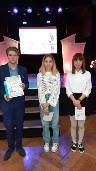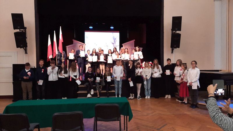 4 listopada 2022 roku w Legnicy odbył się Rejonowy Konkurs Poezji Patriotycznej. W konkursie wzięło udział 30 uczniów z rejonu legnickiego, m.in. z Legnicy, Lubina Złotoryi. Naszą szkołę pięknie reprezentowało 3 uczniów: Pola Gliszczyńska z kl. 8b, Lena Domaros z kl. 8c oraz Igor Kisiel z klasy 8b. Swoim brawurowym wykonaniem Roty Igor Kisiel zajął II miejsce w konkursie! Dziękujemy recytatorom i życzymy kolejnych sukcesów w zbliżających się konkursach!!!