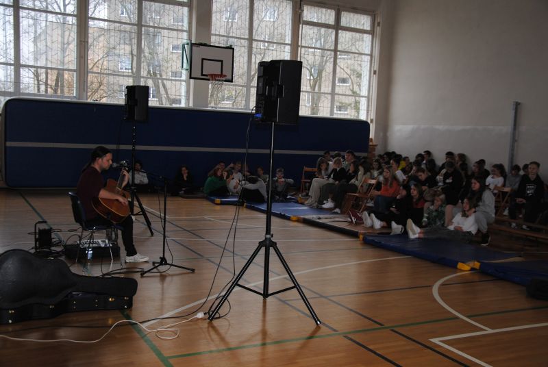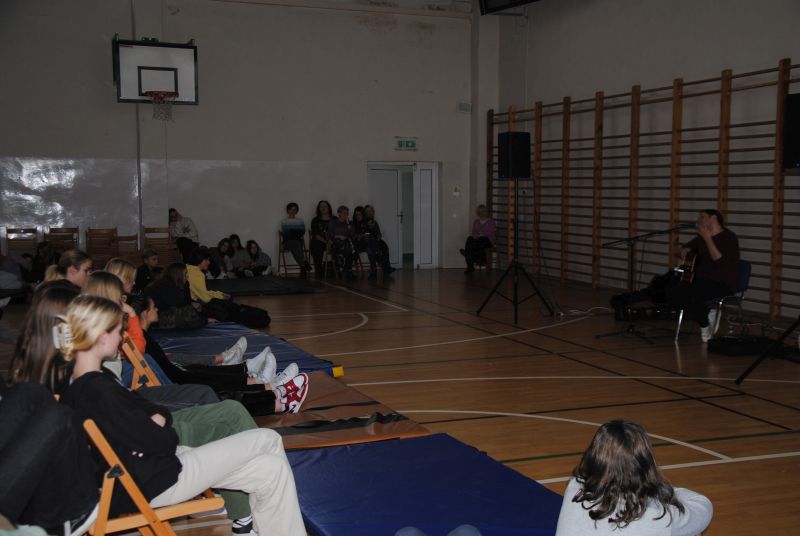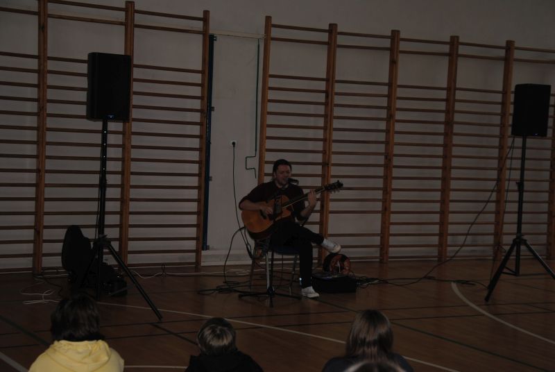 Dnia 22 listopada 2022 r. w naszej szkole po raz pierwszy realizowaliśmy Program profilaktyki uzależnień pod postacią recitalu słowno-muzycznego pt. „Wolności oddać nie umiem” w wykonaniu znanej postaci ze sceny muzycznej - Gabriela Fleszera. Podczas recitalu zostały zaprezentowane treści mające przestrzec młodych ludzi przed wchodzeniem na drogę uzależnień, które przeplecione były znanymi utworami, m.in. „Kroplą deszczu”, „Bilet do nieba”, „Kto panem, kto sługą” z akompaniamentem gitary. Artysta poruszał przykre epizody z własnego życia oraz innych znanych osób, które mają stać się przestrogą dla młodzieży, widzącej swych idoli w najjaśniejszych barwach. Muzyk opowiadał o uzależnieniach najbardziej zagrażających zdrowiu i życiu, które stają się coraz większym problemem społecznym. Nasz gość próbował uświadomić uczniom, że życie jest o wiele ciekawsze bez używek, które dają jedynie zakłamane szczęście na chwilę działania używki, a w konsekwencji niosą cierpienie, czasem nawet na długie lata. Prezentacja została wzbogacona o fakty i opinie naukowców odnośnie palenia i innych uzależnień. Występ zakończył utworem „Kocham wolność”, aby podsumować, jak cenne jest życie naprawdę wolne, zwłaszcza wolne od uzależnień. Program został sfinansowany z Gminnego Programu i Profilaktyki Przeciwdziałania Alkoholizmowi.