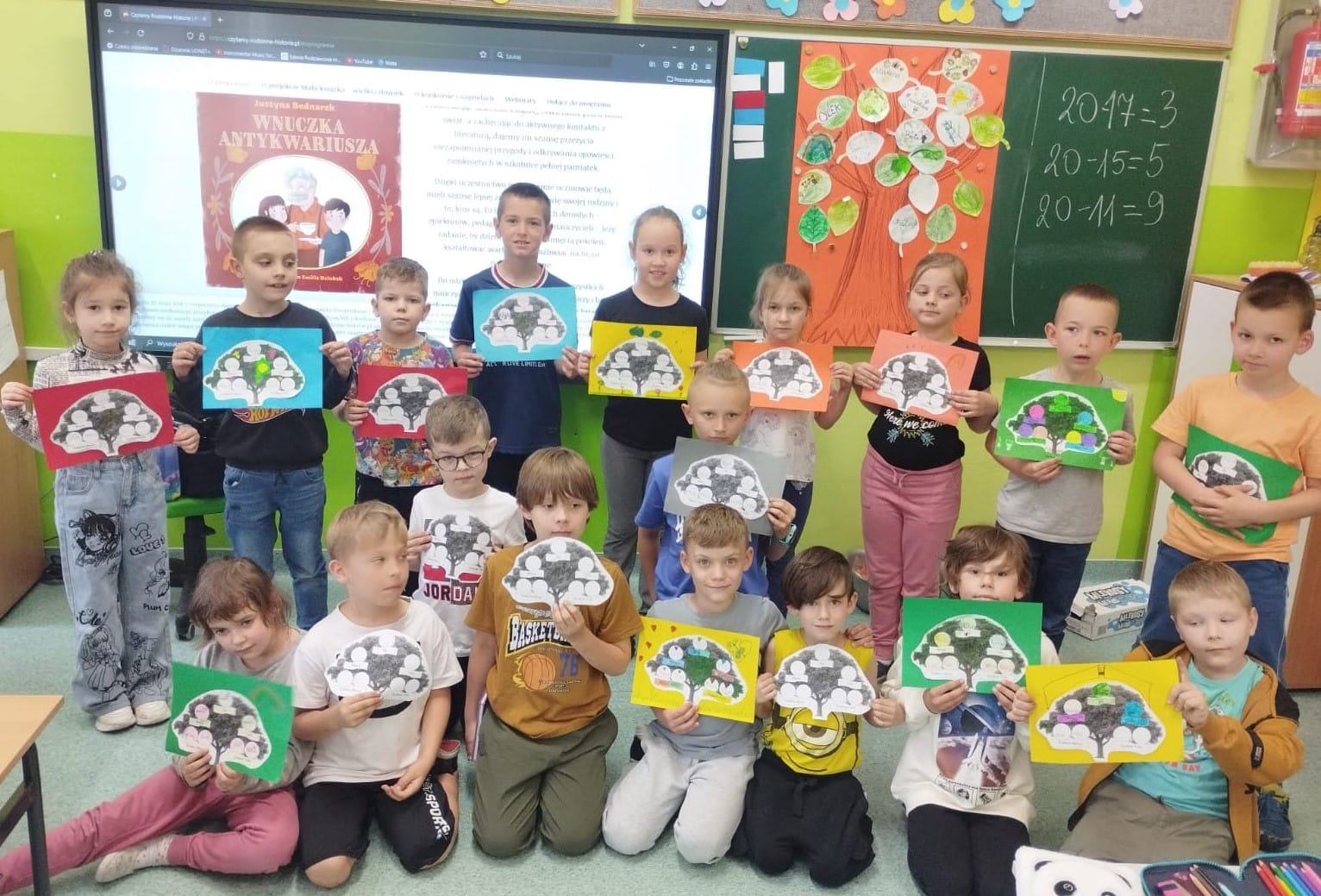Już za nami pierwszy etap Programu „CZYTAMY rodzinne historie”. Podczas zajęć wszyscy nasi najmłodsi uczniowie wysłuchali głośnego czytania pierwszego rozdziału książki Justyny Bednarek pt. „Wnuczka antykwariusza”. Potem z wielką ochotą opowiadali o swoich rodzinnych historiach oraz stworzyli drzewa genealogiczne.