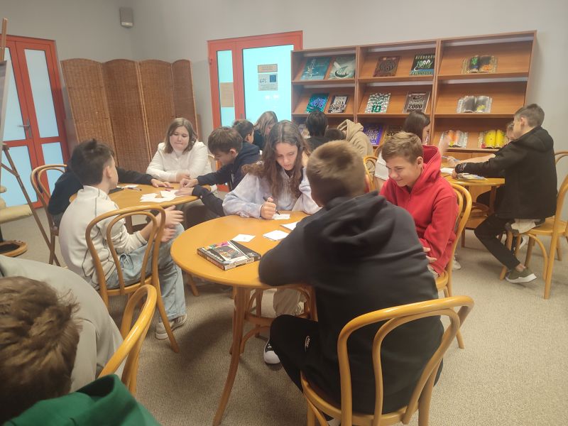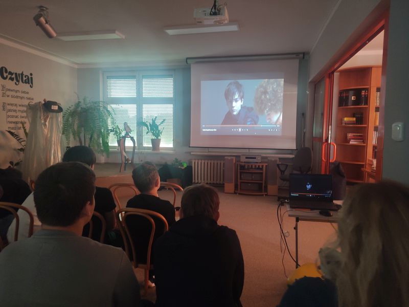 Trwa ogólnopolska akcja czytelnicza Noc Bibliotek, w tym roku pod hasłem „Moc Bibliotek”. Klasa 7b z wychowawcą brała udział w bibliotece szkolnej w warsztatach literacko -filmowych „O mocach i niemocach”. Uczniowie oglądali film „Mój brat ściga dinozaury”, słuchali fragmentów powieści, która była inspiracją do filmu. Historia Jacka i jego brata Gio z zespołem Downa pokazuje, że prawda ma moc większą niż kłamstwo, a akceptacja i miłość są prawdziwą wartością.