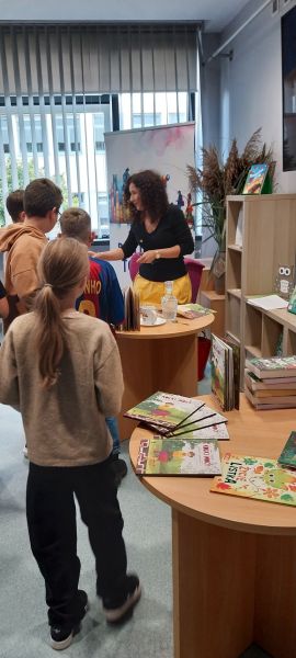 Piątoklasiści mieli również okazję zadać pytania dotyczące twórczości i poglądów Pani Pauliny na życie. W czasie spotkania uczniowie zobaczyli dużo książek autorki. Niektórzy nawet zakupili jej publikacje, otrzymując autograf.