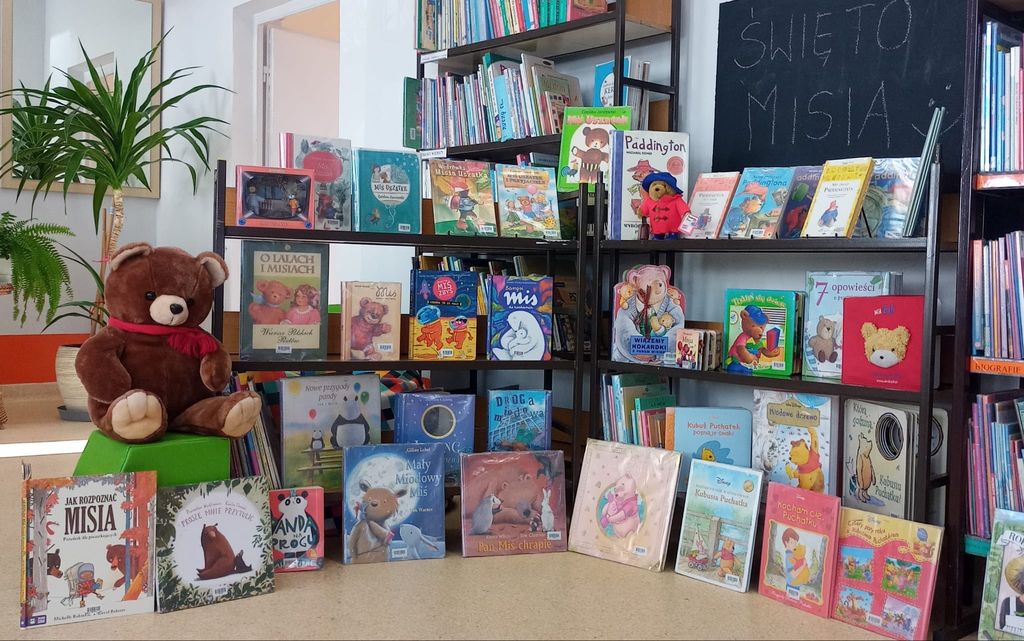 W ostatnim tygodniu listopada, z okazji Światowego Dnia Pluszowego Misia, w naszej szkolnej bibliotece królowały... pluszowe misie. Uczniowie klas 0-3 wzięli udział w zmisiowanych zajęciach bibliotecznych. Dzieci miały możliwość obejrzenia wystawki misiowych książek, których, jak się okazuje, jest w bibliotece bardzo dużo!... Dzięki pięknej prezentacji miały też okazję poznać prawdziwe niedźwiedzie i bajkowe misie. Każde dziecko mogło ponadto spróbować swoich sił podczas rysowania misia koali krok po kroku, według instrukcji. Dzieci świetnie poradziły sobie również w układaniu misiowych haseł z rozsypanek wyrazowych, a także miały okazję pobrykać podczas opowiastki ruchowej "Leśne misie".
