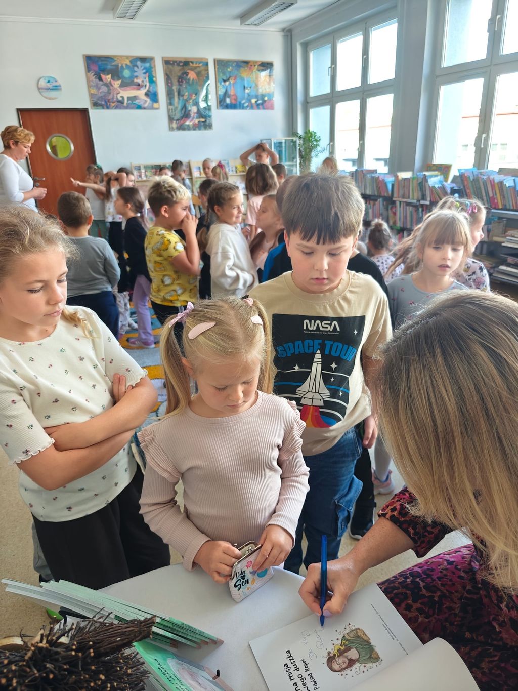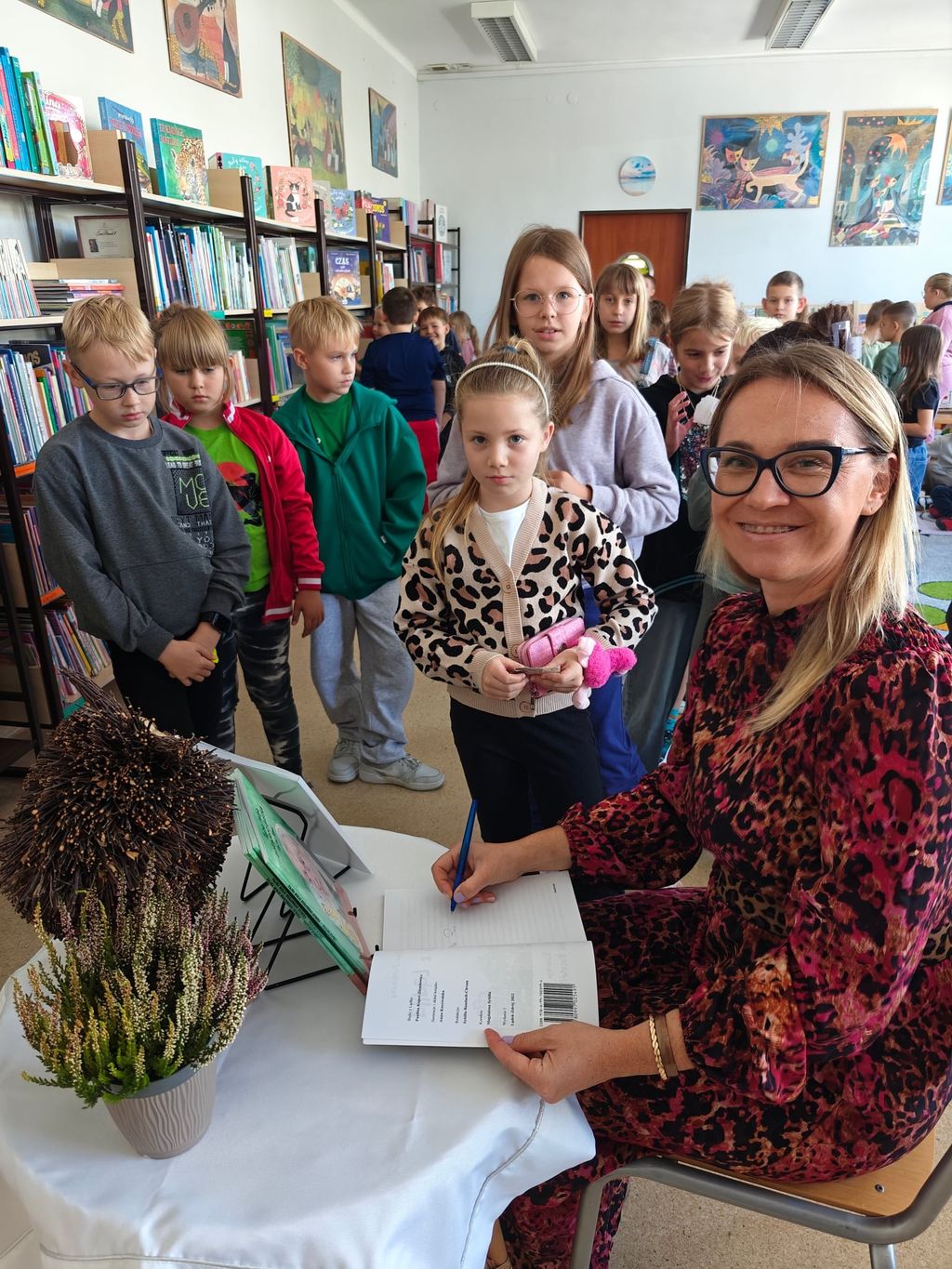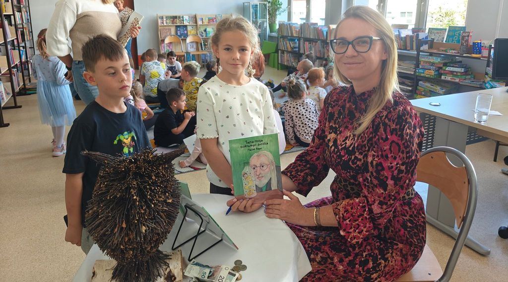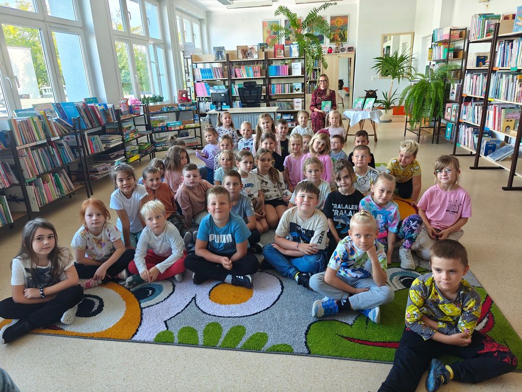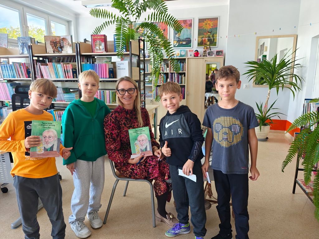 23 września 2025 roku, w bibliotece szkolnej, uczniowie grupy przedszkolnej 0T oraz klas 1a, 2a i 3b mieli okazję spotkać się z pisarką Pauliną Kopeć. Autorka opowiedziała o swojej pracy pisarskiej, o tym, jak powstają książki i skąd czerpie na nie pomysły. Dzieci wysłuchały czytanych przez Panią Paulinę fragmentów książki pt. „Tajna misja ziołowego duszka”. Były też rozmowy o supermocach, o tym, że każdy z nas ma w sobie jakąś wyjątkową moc, którą może być odwaga, wyobraźnia, dobroć albo życzliwość i chęć pomagania innym. Na zakończenie spotkania nie zabrakło autografów oraz wspólnych zdjęć.