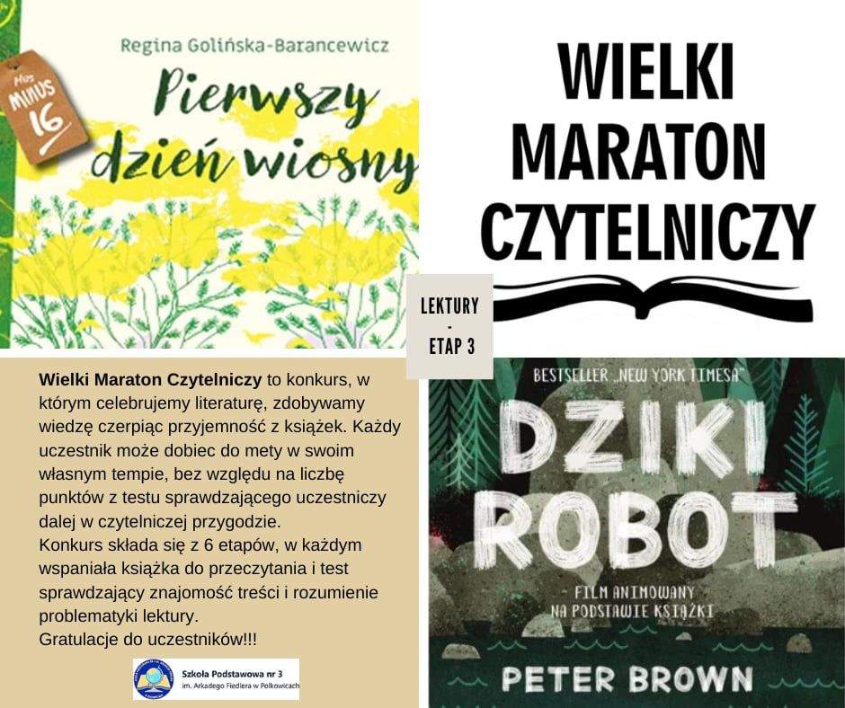 środa, 17 grudnia 2025 Trwa WIELKI MARATON CZYTELNICZY!!! Kolejny etap za nami!!! Szczegóły na plakacie. Koordynator konkursu Aneta Stefaniak Drukuj red. sp3_agata_kusiak Następny wpis Poprzedni wpis