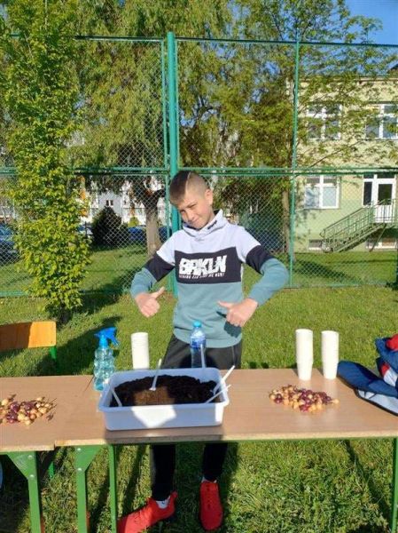 Uczestnicy ekologicznego święta wspólnymi siłami, pod opieką starszych kolegów i koleżanek z klas 6 i 7, odwiedzali osiem stanowisk zadaniowych, na których rozwiązywali zadania teoretyczne i praktyczne - przydało się celne oko, sprawność fizyczna, spryt oraz wytrwałość. Na koniec każdy uczestnik mógł samodzielnie zasadzić cebulkę roślinki, którą zabrał do domu.