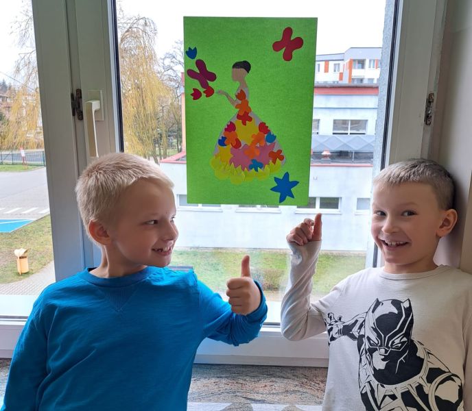 W klasach pojawiły się wiosenne dekoracje i tematycznie związane z tym świętem tablice, nie zabrakło również strojów w kolorach wiosennych.