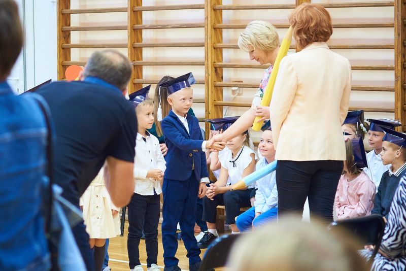 Pierwszoklasiści w obecności sztandaru szkoły złożyli uroczyste ślubowanie i zostali pasowani na uczniów przez Panią Burmistrz oraz Panią Dyrektor. Na zakończenie uroczystości nasi bohaterowie otrzymali w prezencie dyplomy oraz słodkie niespodzianki ufundowane przez gminę oraz Radę Rodziców naszej szkoły. Uroczystość uświetniono pamiątkowymi zdjęciami.