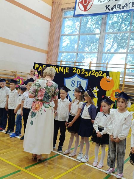 4 września odbyła się uroczystość Pasowania Pierwszoklasistów na uczniów naszej szkoły. Uroczystość uświetniła swoją obecnością Pani Ewa Kowalik - Zastępca Burmistrza ds. Społecznych oraz Dyrekcja naszej szkoły - Dyrektor Naczelna - Pani Adriana Ciupka i Dyrektor ds. Dydaktycznych - Pani Małgorzata Kaczmarek.
