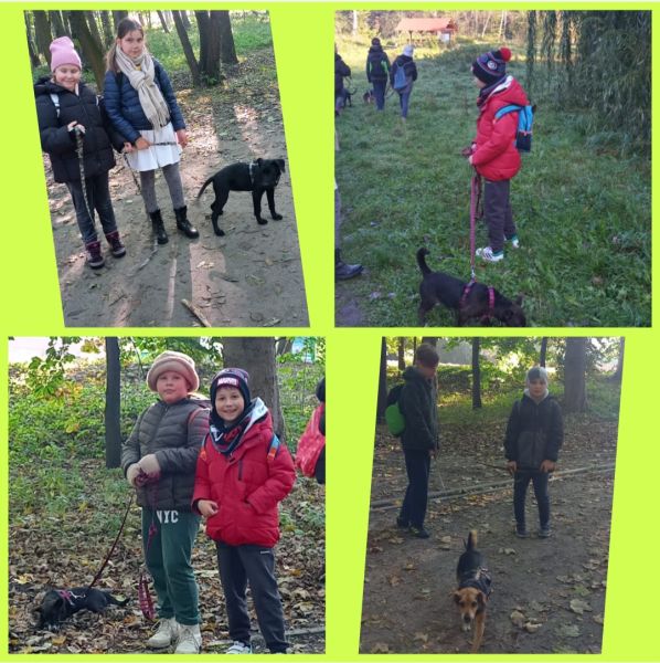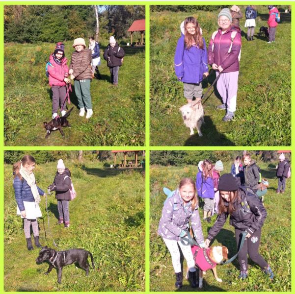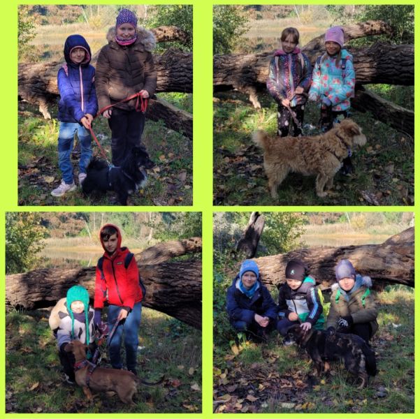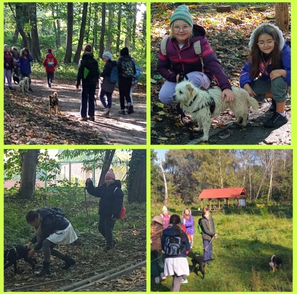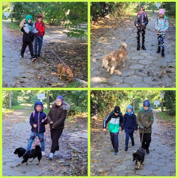 Przygoda rozpoczęła się od zwiedzenia schroniska i obejrzenia zwierzątek, które witały dzieci wesoło, szczekając i merdając ogonkami. Potem każda para otrzymała pieska i poszła z nim na spacer. Uczniowie spacerowali, biegali i bawili się ze swoimi milusińskimi... To były niezapomniane chwile, pełne spontanicznej radości i błysku w oczach! Każdy dosłownie "zakochał się" w swoim pupilu, dlatego tak żal było się z nimi rozstać!...