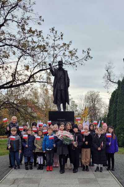 Uczniowie klasy 3c uczcili 105 rocznicę odzyskania przez Polskę niepodległości. W hołdzie poległym za ojczyznę młodzi patrioci złożyli kwiaty pod pomnikiem Józefa Piłsudskiego i w zadumie rozważali jego słowa wyryte w kamieniu: