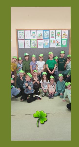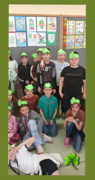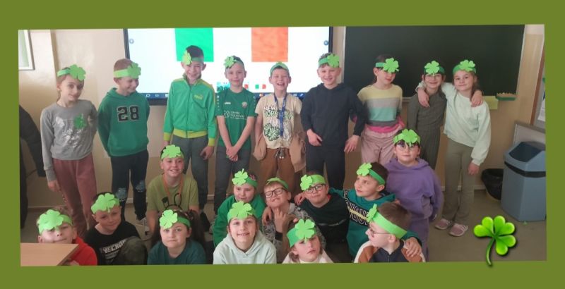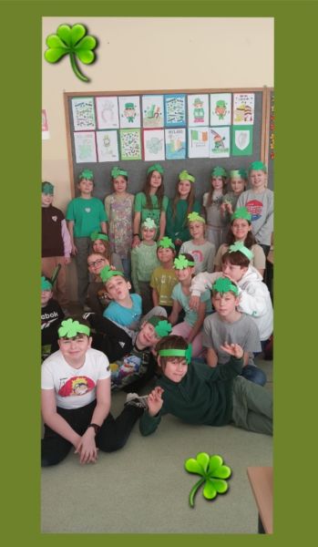 P. Agnieszka Knihnicka - nauczycielka j. angielskiego, wprowadziła elementy kultury irlandzkiej, takie jak: zielony kolor, koniczynki, czy garnek złota, a wszystko to w formie gier, legend oraz quizu o Irlandii. Dzieci uczyły się w języku angielskim prostych zwrotów, związanych ze świętem, a także wykonały proste prace plastyczne, związane z tematyką. Lekcje angielskiego były świetną okazją do zabawy i jednocześnie nauki języka angielskiego poprzez świąteczny kontekst.