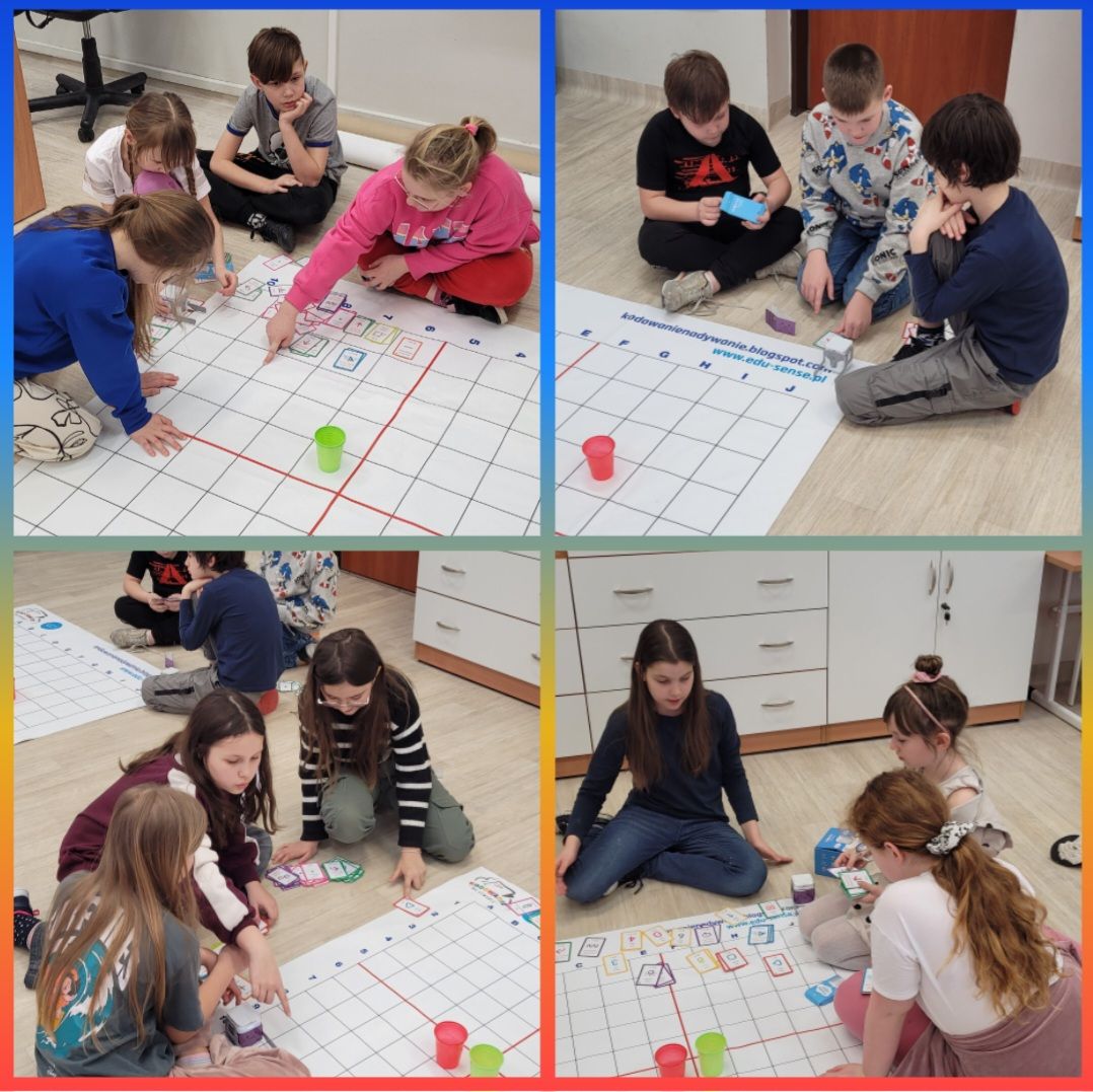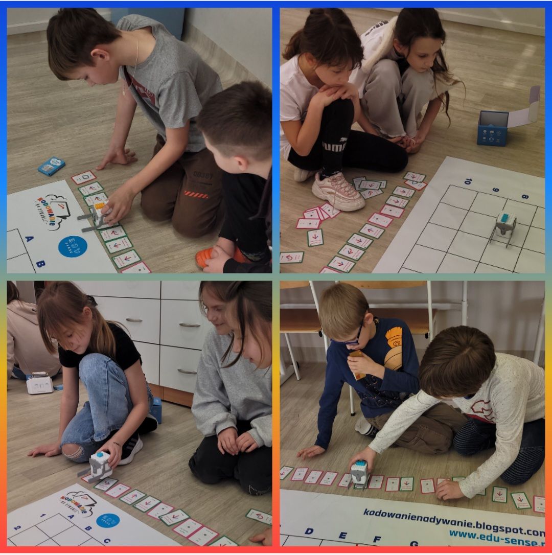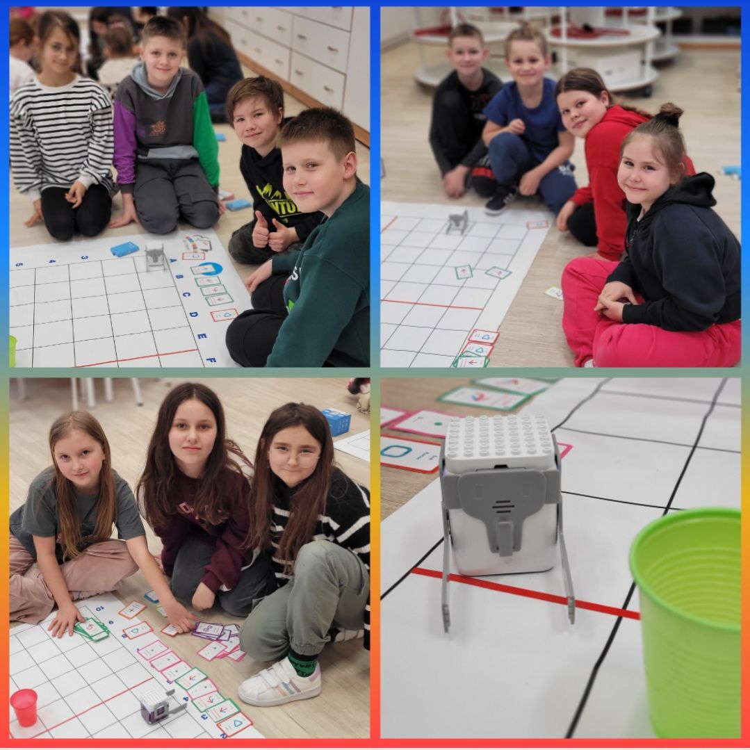 Nauka przez zabawę, na dodatek z wykorzystaniem robotów, to świetny sposób na aktywizowanie uczniów i wprowadzenie ich w świat kodowania i programowania. Tym razem przedstawiamy działania z Genibotami. Są to małe roboty, programowane przy użyciu specjalnych kart. Praca z nimi uczy wspomnianych wyżej podstaw programowania i kodowania oraz doskonali myślenie przyczynowo - skutkowe. Jest też świetnym sposobem na integrację zespołów i doskonalenie współpracy. Dzieci poznały zasady sterowania robotami: za pomocą kart, wydawane są polecenia, które Geniboty wykonują: jeżdżą, skręcają, zawracają, kręcą się i grają melodyjki. Niektórzy uczniowie potrafią nawet zaprogramować robota tak, aby wyruszył, dotarł do wskazanego przedmiotu np. kubeczka i wrócił z nim na miejsce startu. Jest to świetny sposób na zdobywanie nowych umiejętności poprzez zabawę i doświadczanie.