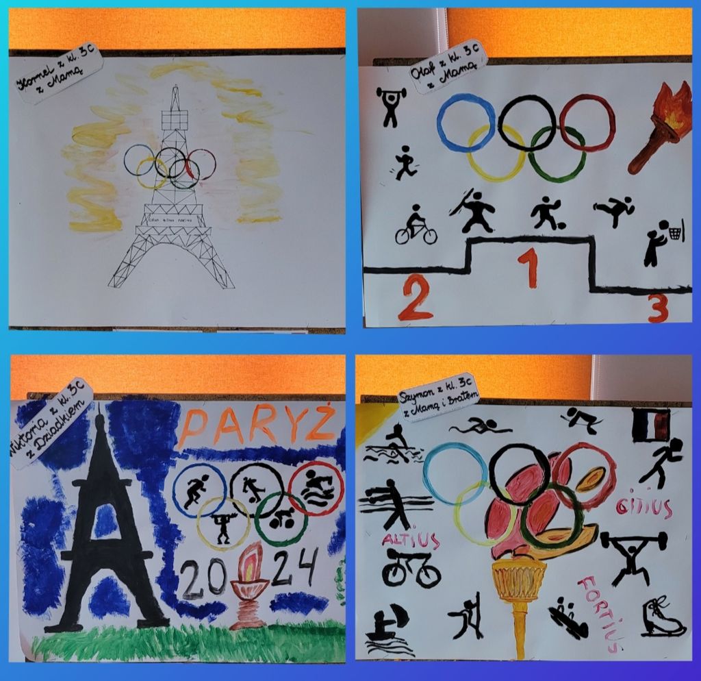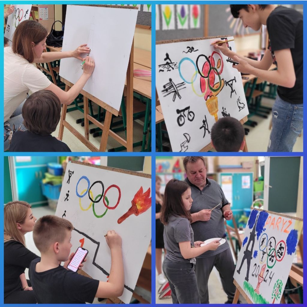 W kwietniu, uczniowie klas trzecich, wraz ze swoimi bliskimi, przybyli do szkoły, aby wziąć udział w kolejnej edycji "Rodzinnego Malowania". Tym razem tematyka dotyczyła symboli olimpijskich. Każda grupa wykazała się kreatywnością i ogromnym talentem. Powstały piękne prace, które przyozdobiły nasz szkolny korytarz. Serdecznie dziękujemy wszystkim uczestnikom za poświęcony czas, chęci i wspaniałą, owocną pracę.