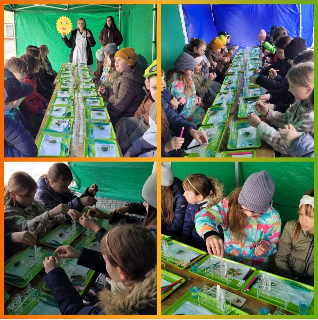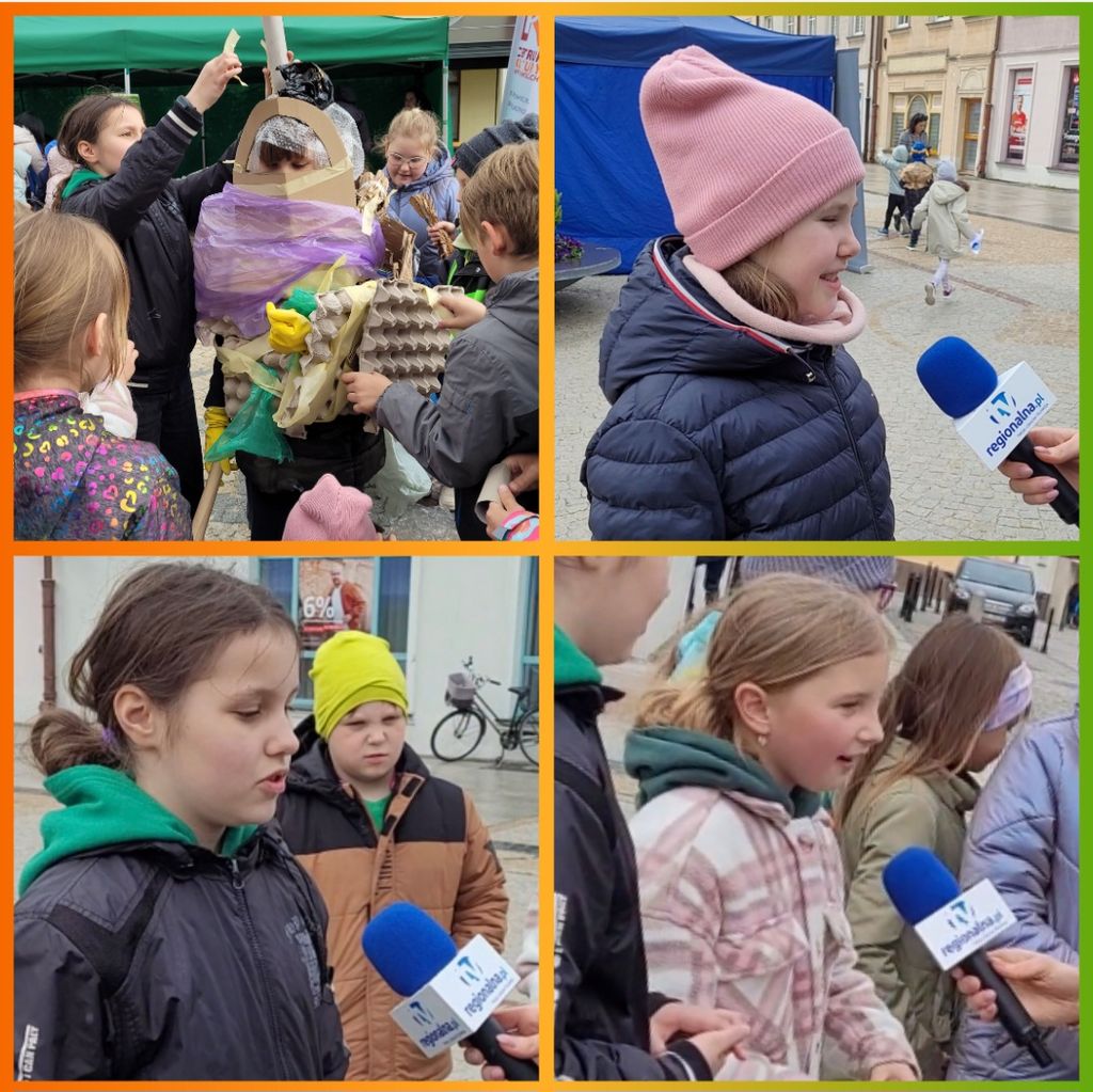 25.04.2024r. na polkowickim Rynku odbył się 15 Polkowicki Festiwal Ziemi. W tym roku edukacja ekologiczna zaplanowana była pod hasłem „Czyste powietrze, lepszy klimat”. Uczniowie klasy 3c reprezentowali naszą szkołę, aktywnie uczestnicząc w wielu przygotowanych przedsięwzięciach. Dzieci wzięły udział m. in. w wyjątkowych „Warsztatach mody ekologicznej”, podczas których, z wykorzystaniem surowców wtórnych stworzyły unikalną, upcyklingową kreację dla kolegi z klasy. Doskonałą okazją do podniesienia świadomości ekologicznej był również udział w warsztatach pt. „Fotosynteza w akcji”, przeprowadzonych w „Krainie eksperymentów”. Dzieci wykonały doświadczenia poświęcone roślinom i procesom w nich zachodzącym. Dowiedziały się, czym jest proces fotosyntezy, a także utrwaliły wiedzę na temat zjawiska kapilarności. Ogromną radość sprawiło trzecioklasistom rzucanie szyszkami do celu, segregowanie odpadów, oglądanie książek o treści przyrodniczo – ekologicznej, a także tworzenie stroików z szyszek, gałązek, nasion, kory, drewna i liści. Kilkoro dzieci udzieliło nawet wywiadu do Telewizji Regionalnej. Na koniec każdy uczeń otrzymał sadzonkę begonii, którą obiecał zasadzić i pielęgnować.