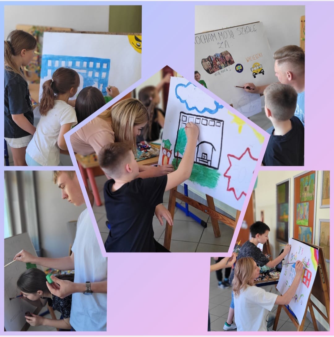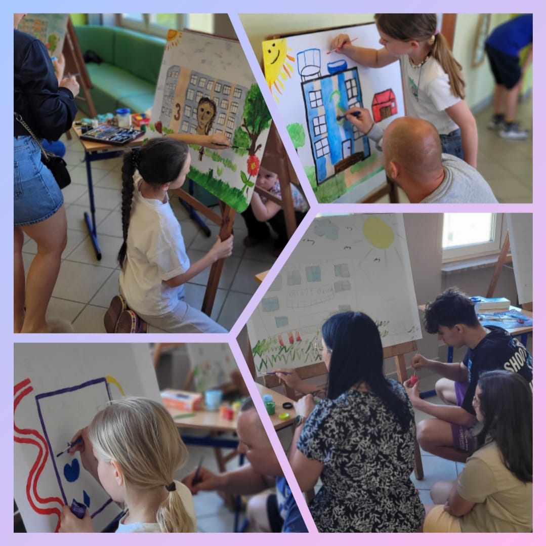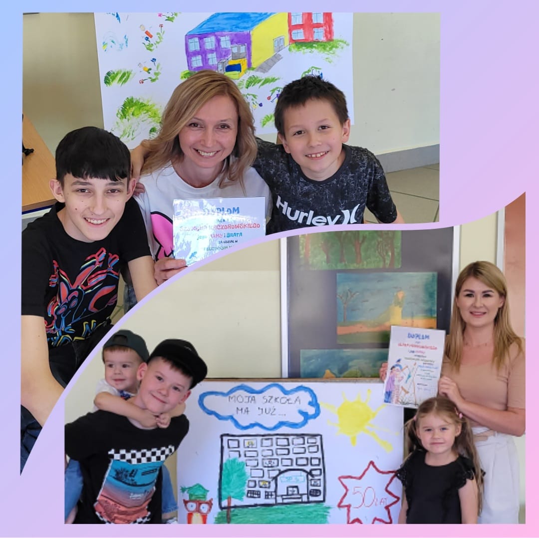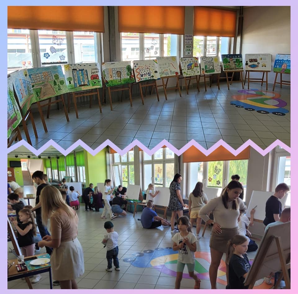 13 maja, w ramach działań związanych z Jubileuszem 50-lecia naszej szkoły, wszystkie trzecie klasy wzięły udział w spotkaniu pod hasłem "Rodzinne Malowanie". Szkolny korytarz zamienił się na ten czas w pracownię malarską, w której dwanaście rodzin namalowało piękne obrazy, pt. "Moja szkoła i ja". To był bardzo mile spędzony czas, pełen radości, życzliwej atmosfery i owocnej pracy, za co serdecznie dziękujemy wszystkim przybyłym gościom.